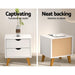 Made from a combination of particle and MDF board with solid rubber wood legs, the Anders Bedside Drawers is the perfect choice to grace any bedroom, study or any other space in a discerning home or establishment. The splayed legs add a unique stand to this very able Bedside Drawers that also come with flushed handles and smooth anti-rust drawer sliders for hassle-free use. Not least, ample storage space is found with the two drawers for all your bedside or personal essentials.