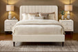 The Minolta Bedroom Suite is upholstered in 100% polyester fabric, delivering a smooth, comfortable surface that feels gentle to the touch while maintaining a polished appearance. The padded bed design adds visual softness and a sense of luxury, making your bed the natural focal point of the room. This fabric finish pairs effortlessly with neutral palettes, layered bedding, and warm lighting.