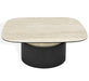 The Armoni Coffee Table is defined by its geometric precision and high-end materials. The travertine ceramic top, known for its durability and unique patterns, sits atop a sophisticated black oak veneer body. The distinctive champagne painting on the middle part and base complements the table’s overall elegance, ensuring it stands out as a centrepiece in any room.