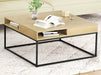 Elevate your living room with this modern and functional Bergen Coffee Table. The sleek and elegant design features a sturdy metal frame for lasting durability, while the open shelf below offers additional storage space for books or magazines. Crafted from particle board with a beautiful wood grain finish, this table is easy to clean and maintain, ensuring it looks stunning for years to come. The easy assembly process means you'll be enjoying your new Bergen Coffee Table in no time, creating a perfect centerpiece for your living space.