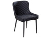 The chairs are designed to complement the robust table with their sleek and contemporary profile. Each chair measures 52 cm wide, 61 cm deep, and 81 cm high, providing optimal comfort and support. They feature high-quality PU coverings and are cushioned with soft foam seats, ensuring a premium seating experience. The sand powder coating on the black legs not only enhances the visual appeal but also adds to the durability of the structure.