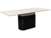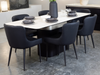 The Armoni Dining Suite features a substantial tabletop crafted from Travertime Ceramic, renowned for its exceptional durability and aesthetic appeal. This cutting-edge material is not only scratch-proof but also fire-resistant, ensuring that beauty and practicality go hand-in-hand. The table is framed with a champagne-painted middle section, adding a touch of luxury and unique style.