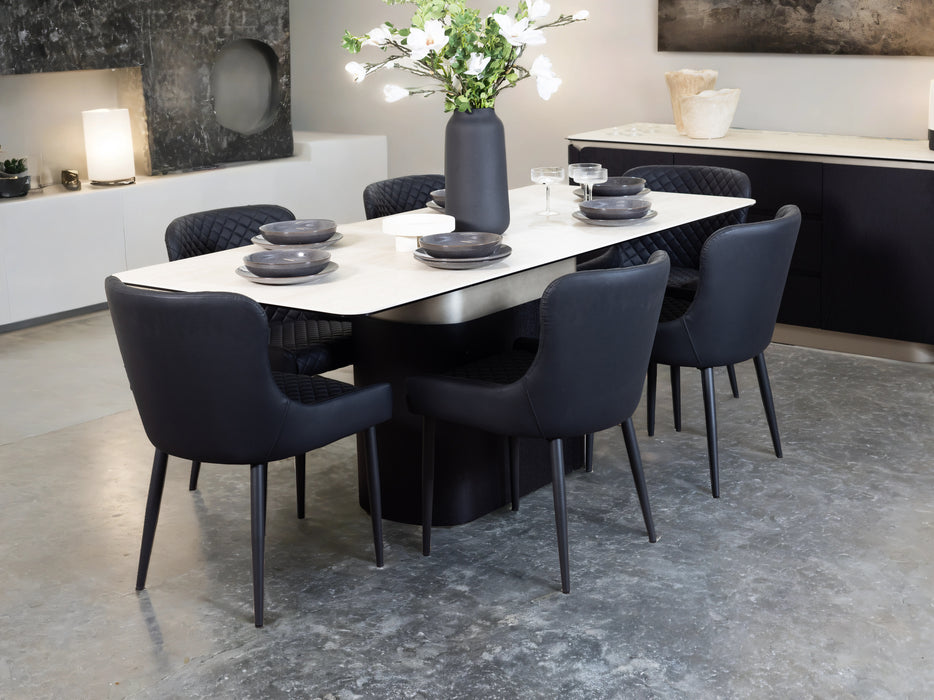 Introducing the Armoni Dining Suite, an epitome of contemporary sophistication designed to enhance your dining experience. Meticulously crafted with a fusion of aesthetics and functionality, this dining set promises to be a striking centrepiece in any modern home.