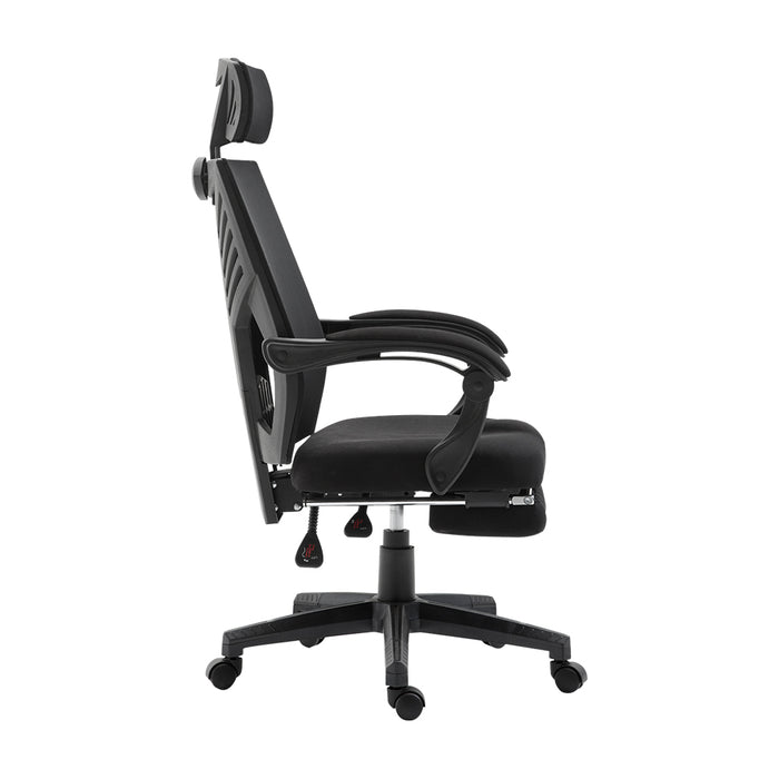 Our Espoir Gaming Office Chair takes work and relaxation seriously. Fact is, the chair integrates both perfectly to give you a premium chair that does more than just luxurious seating. It is durably constructed with a Y-shaped back frame for sturdiness. The highly breathable mesh means that you are never hot and bothered with long sitting hours as the chair is always well-ventilated. The S-shaped lumber support keeps your back comfortable while the headrest can be adjusted to suit your head. Better still, the chair can be reclined to 150° to suit work, leisure, relaxation and every purpose in between. Together with its retractable footrest and flexible armrests that adjust with back recline, the chair is simply a good seat to keep your feet up for a well-deserved break. Not least, firm base features mute castors that not only prevent floor scratches but also allows quiet and smooth mobility together with the omni-directional seating.