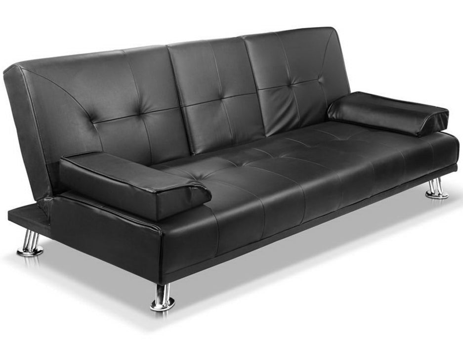 First up, the middle backrest actually folds down to reveal two convenient cup holders. Two drinks close at hand is better than them being one meter away, we would gladly say. And when having a few drinks is beginning to take its effect and you're clamoring for a lie-down, just tilt back the sofa backrest and convert it instantly into a faux leather sofa bed. At 1.88m long and 1.08m wide, the sofa bed should be more than accommodating.