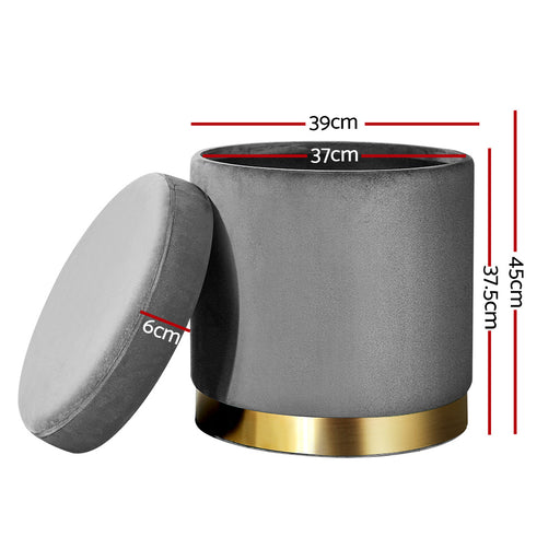 View full detailsOttoman Storage Foot Stool Round Velvet Grey