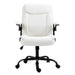 Is your office chair giving you a tough time? Stay productive and work feeling comfortable with our Chastine office chair. The office chair that makes work feel laid back. The more comfortable chair, the higher is the productivity. Our office chair is designed with your comfort in mind and will have your back so that you can focus on the more significant things. Crafted precisely with durable wood frame material, the office chair is sturdy and comes with a high-density foam padding for ultimate comfort. It features premium PU leather upholstery that�s easy to clean and maintain. Furthermore, the stylish metal base is not to be missed. It also features a contoured high-back design that will give you the support you need and help you have a better posture. Plus, the office chair can be adjusted to your preferred requirements; adjust the height to suit your needs, adjustable tilt for a comfortable sitting position, 360 degrees rotating seat, 90 degrees flip-up armrests, and easy mobility around your workspace with smooth castor wheels. Contemporary and well-crafted, our Chastine office chair is sure to offer you a super comfortable seat all day long. Add this office chair to your home office or study room. You are sure to fall in love with the comfort it offers.
