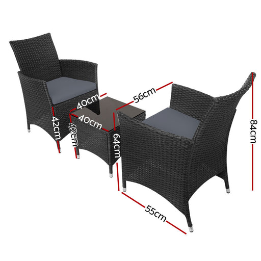 View full details3pc Bistro Wicker Outdoor Furniture Set Black That old outdoor furniture is beginning to show its age? Or your spanking new deck needs a good outd...