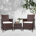 3PC Outdoor Bistro Set Patio Furniture Wicker Setting Chairs Table Cushion Brown