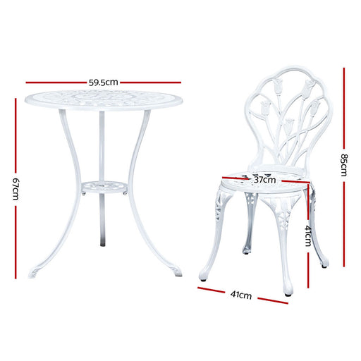 Read Less3PC Outdoor Setting Bistro Set Chairs Table Cast Aluminum Patio Furniture Tulip White