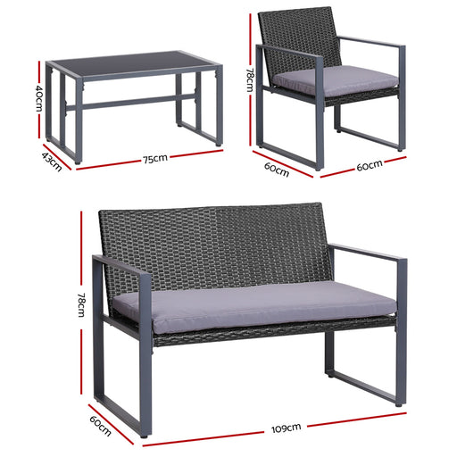 View full details4 Seater Outdoor Sofa Set Wicker Setting Table Chair Furniture Dark Grey
