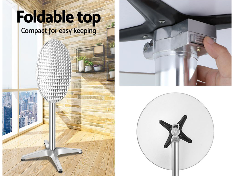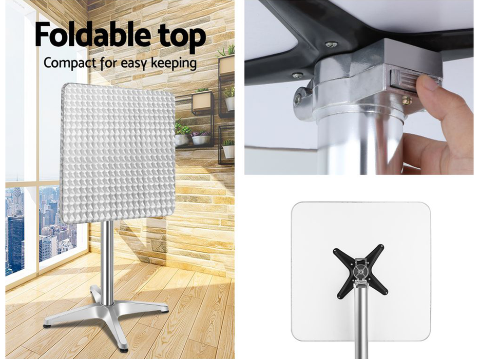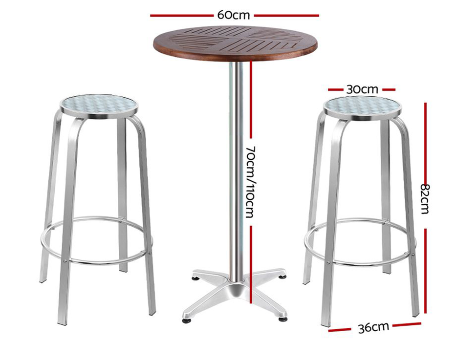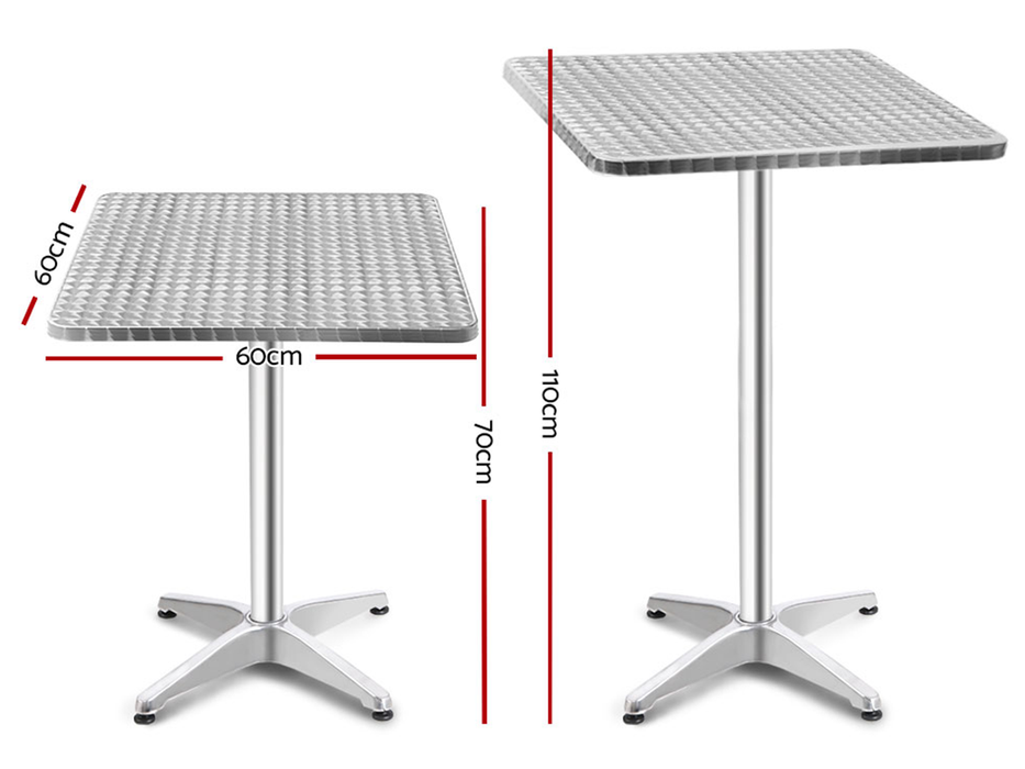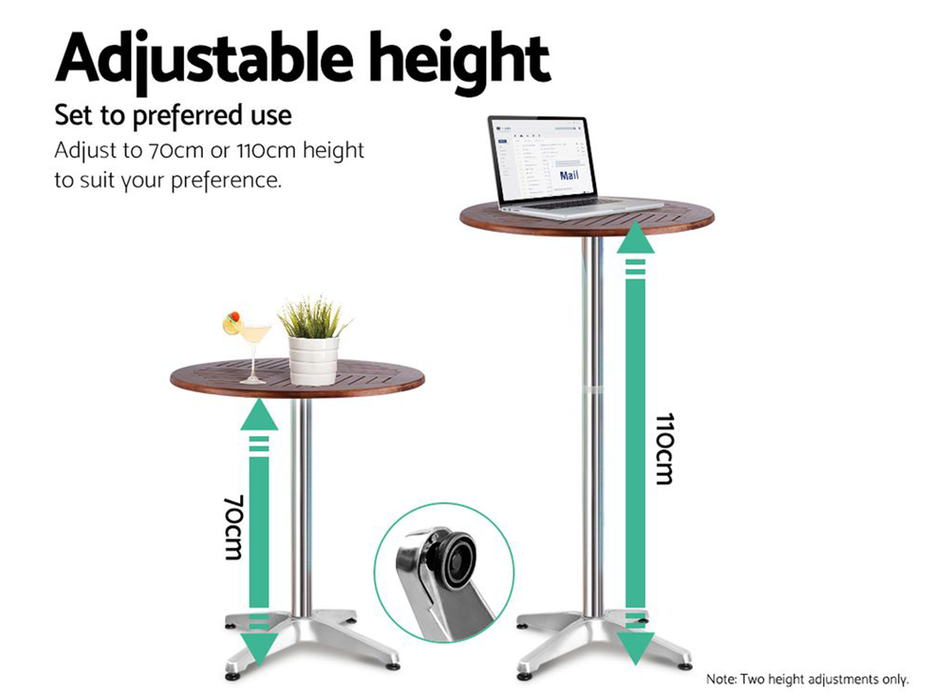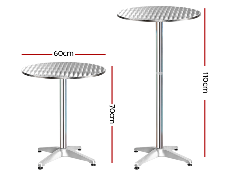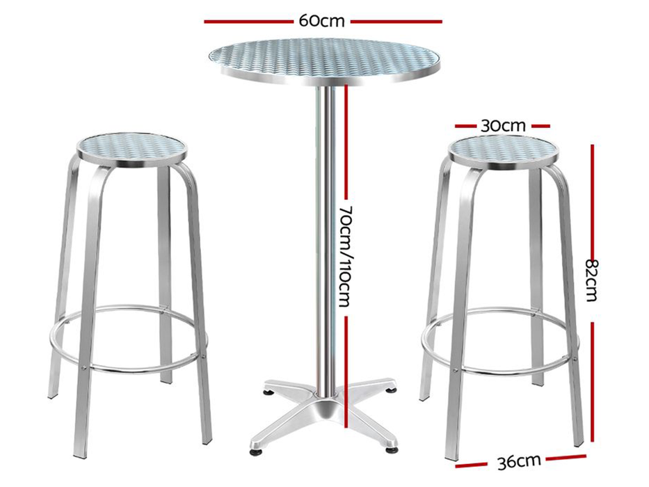 Entertain in style with our contemporary Ala-Bistro Outdoor Bar Set. Comprising two stools and one table, this bar set is stunning in looks and equally as functional. The aluminium stool is flawlessly finished and looks simply stunning from any angle. The eye-catching seat really captures your attention while the upgraded reinforced circular footrest gives the stool an aura of confidence all over. With its aluminium construction, the stool is lightweight and yet strong and sturdy to handle up to 150kg in weight capacity. The matching bar table is height-adjustable and can be set to your preferred height at 70cm or 110cm. The smooth tabletop and sturdy base ensure that your drinks only go down one way and definitely not on the floor. Stowing it away is just as simple as a flick of the quick release lock to fold it away. Perfect for bistros, cafes, pool areas and home patios, our bar set is worth drinking to.