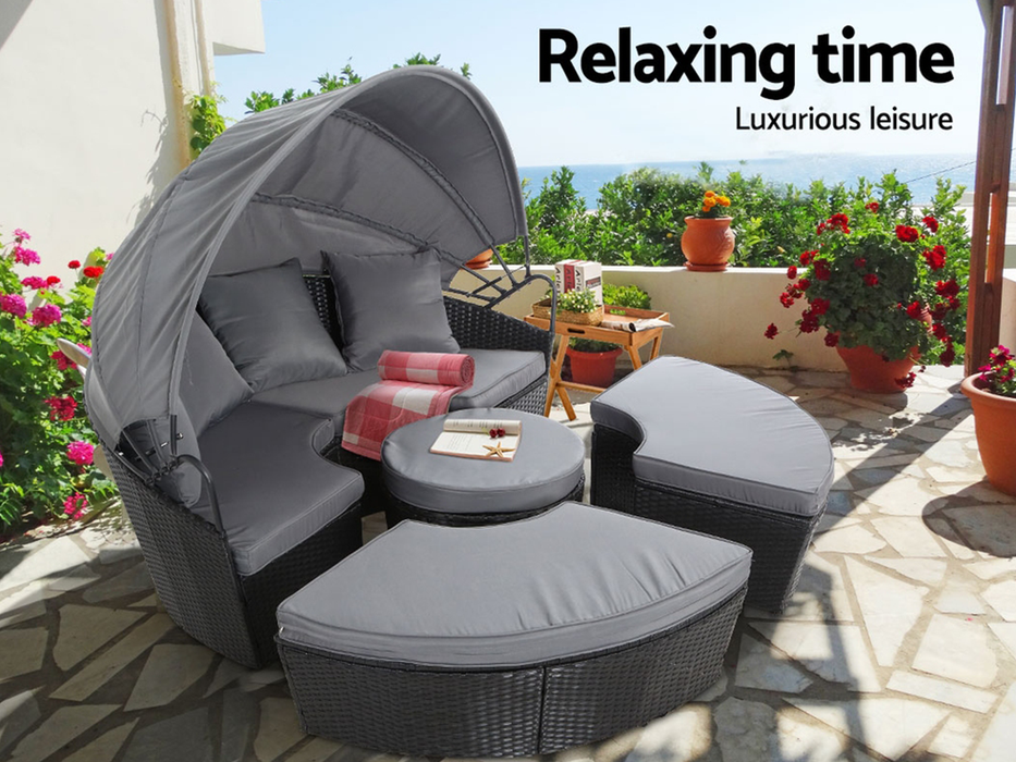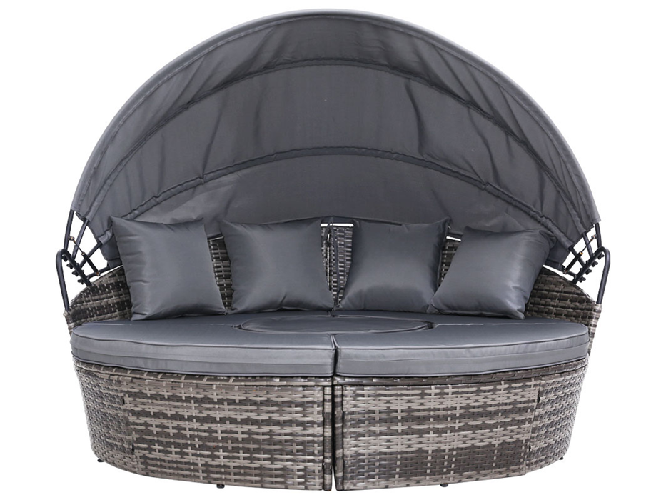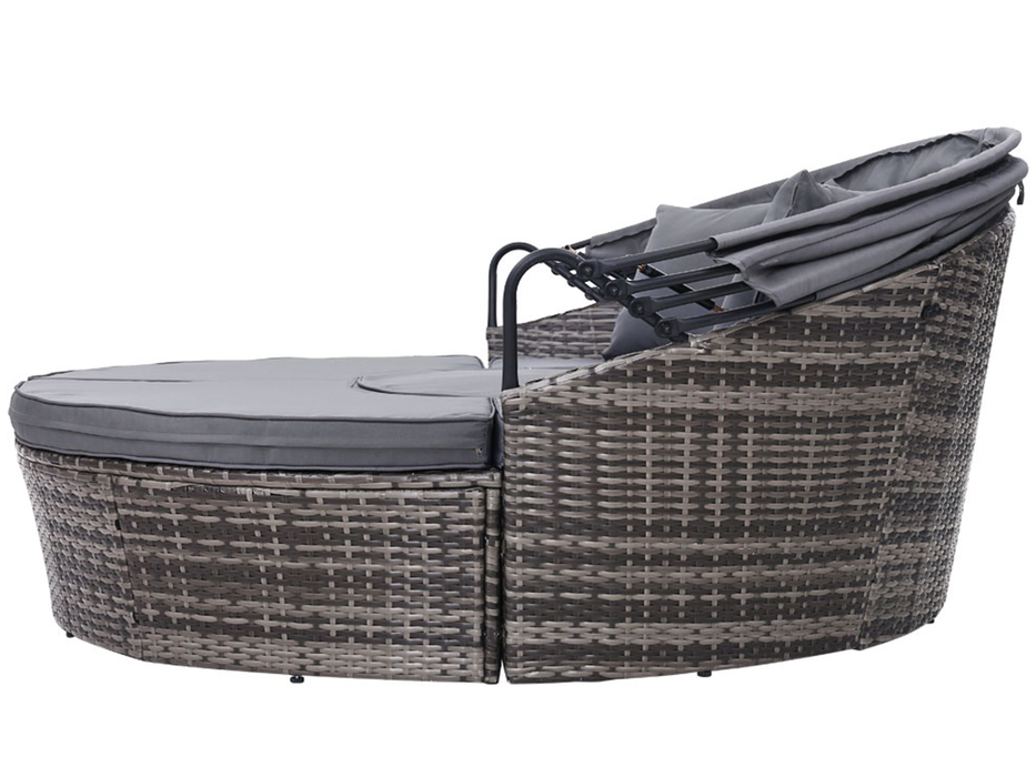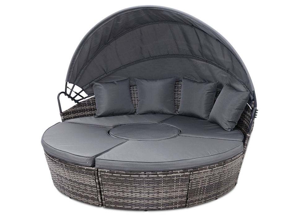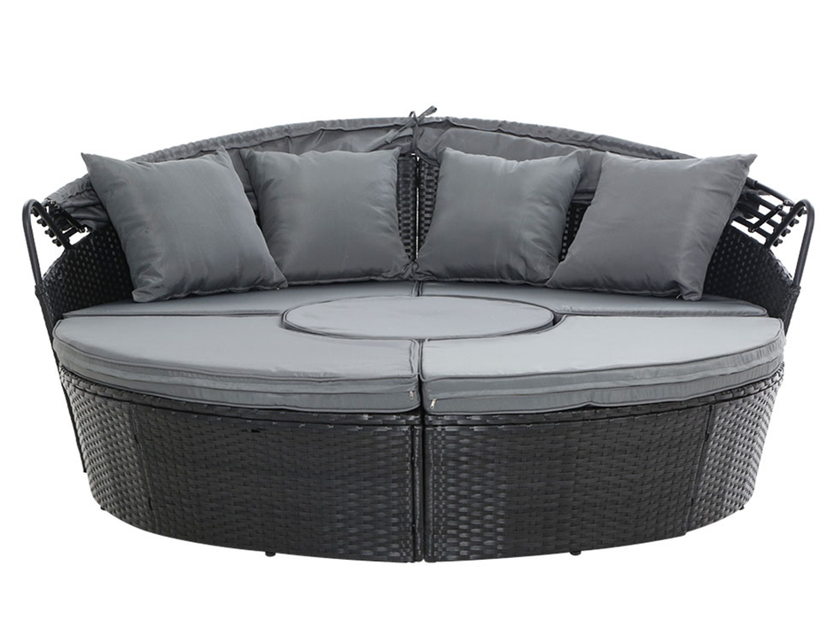 Live life in a perfectly relaxed setting with our Outdoor Day Bed. Built to exacting standards of durability and workmanship, the day bed a joy to use. Especially with its canopy that can be folded down when sunbathing or opened up to 900 to keep your chill-out moments well shaded from direct sunlight and intruding UV-rays. The day bed has a modular design and the base splits into four pieces so that you can alter the arrangement as you please. Put all four together to use as bed or separate to use as a sofa and individual seating. Constructed from heavy-duty powder-coated galvanised steel, hand-woven UV-resistant PE wicker and premium water-resistant polyester fabric, the day bed not only looks good but was made to last. Have it indoors or outdoors, for a unique resting spot or as a peaceful reading zone. The seat cushions and four matching throw pillows are extra thick for plush comfort and are easy to clean with removable and washable covers. Lie back with your loved one on our extra-large outdoor day bed and turn an ordinary day into an extraordinary one.