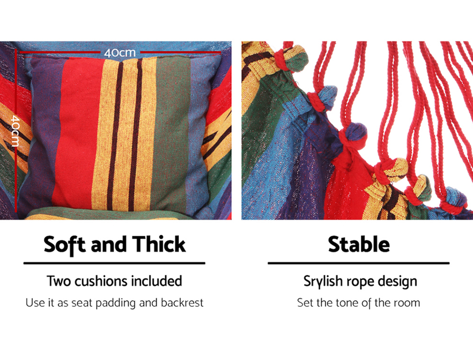 Made of solid timber rail with quality polyester cotton, you can hang this hammock in your backyard as a chill spot for reading books or taking a nap. Its durable strings can hold up to 120kg to suit almost everyone.