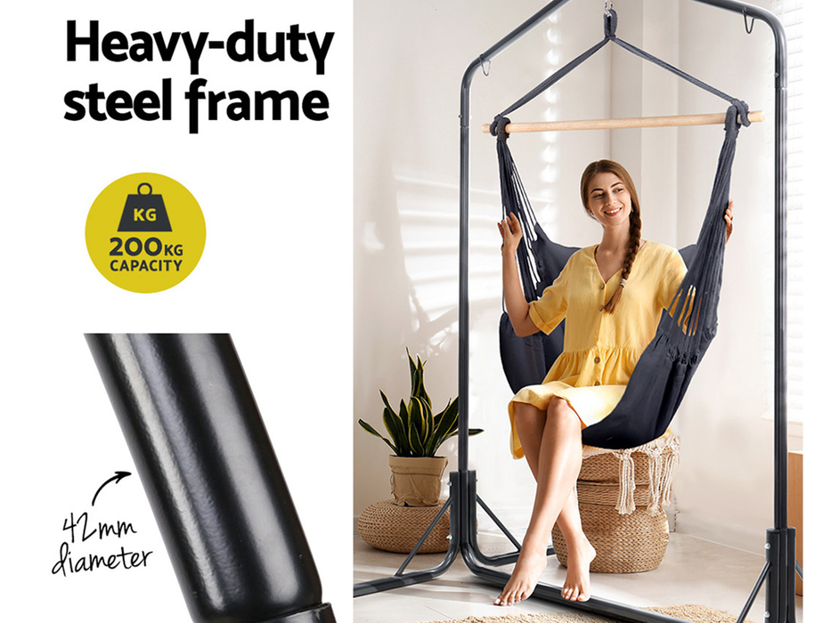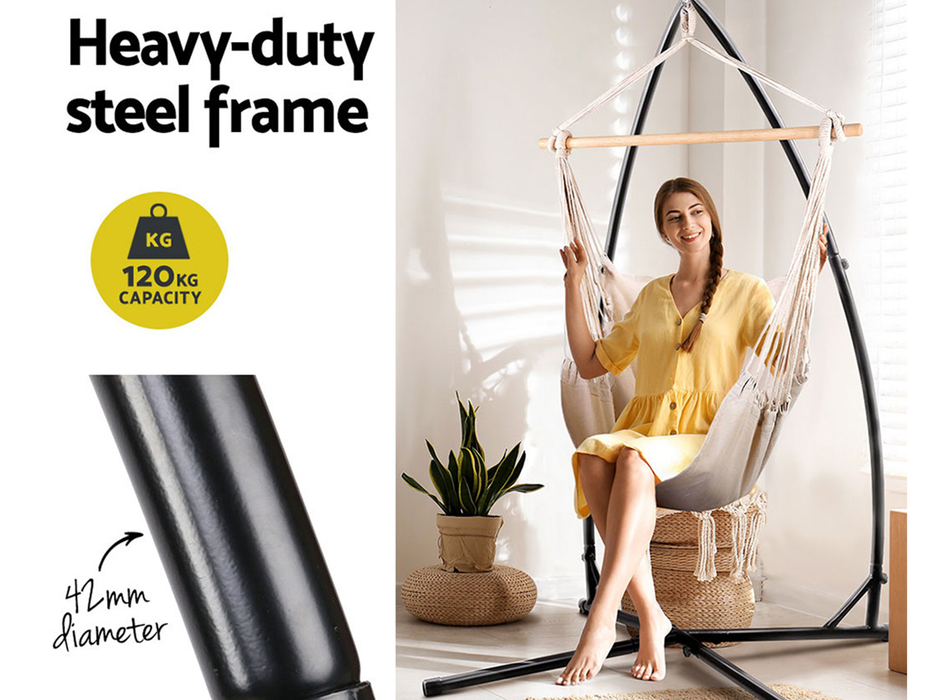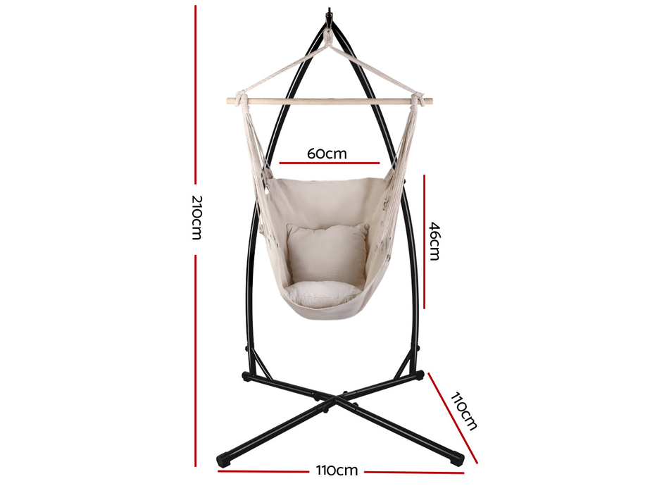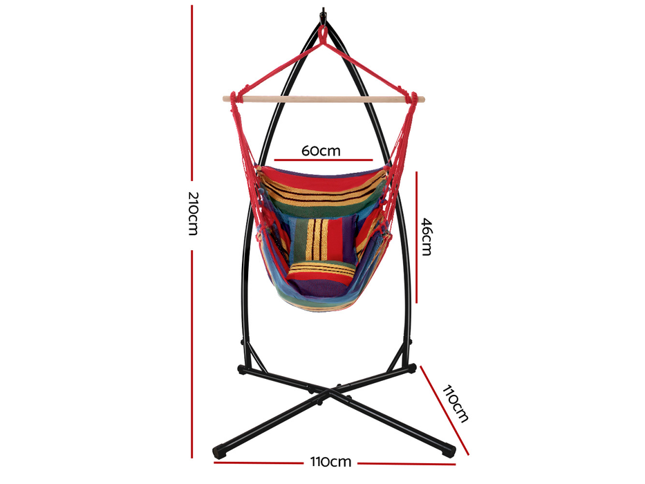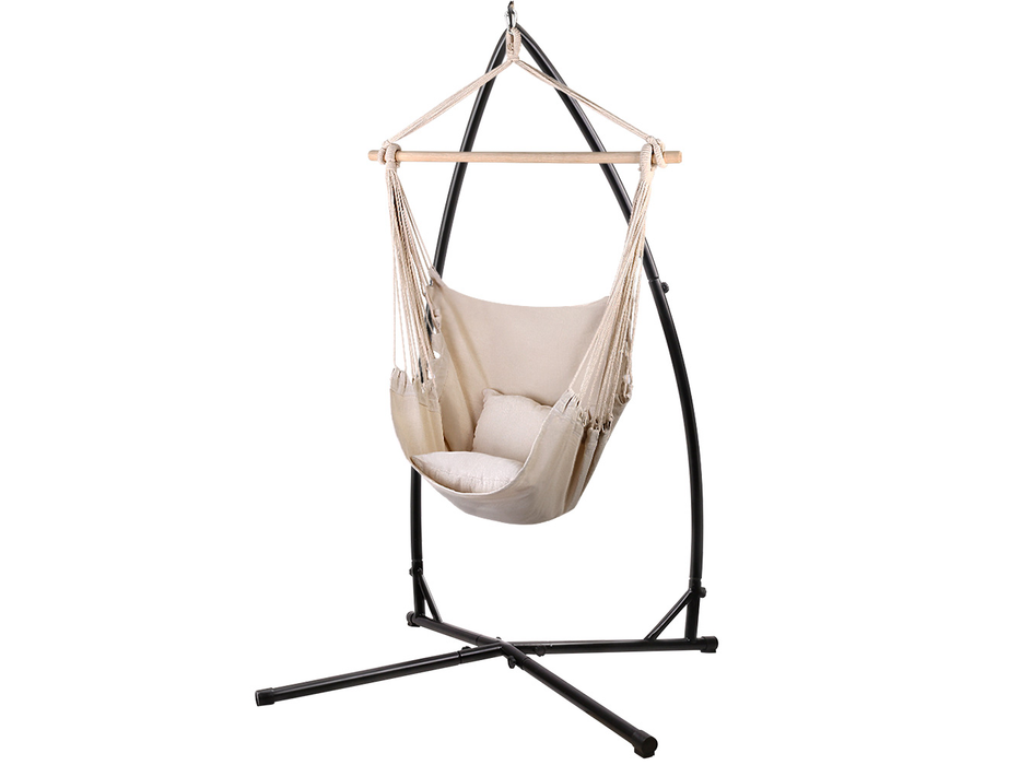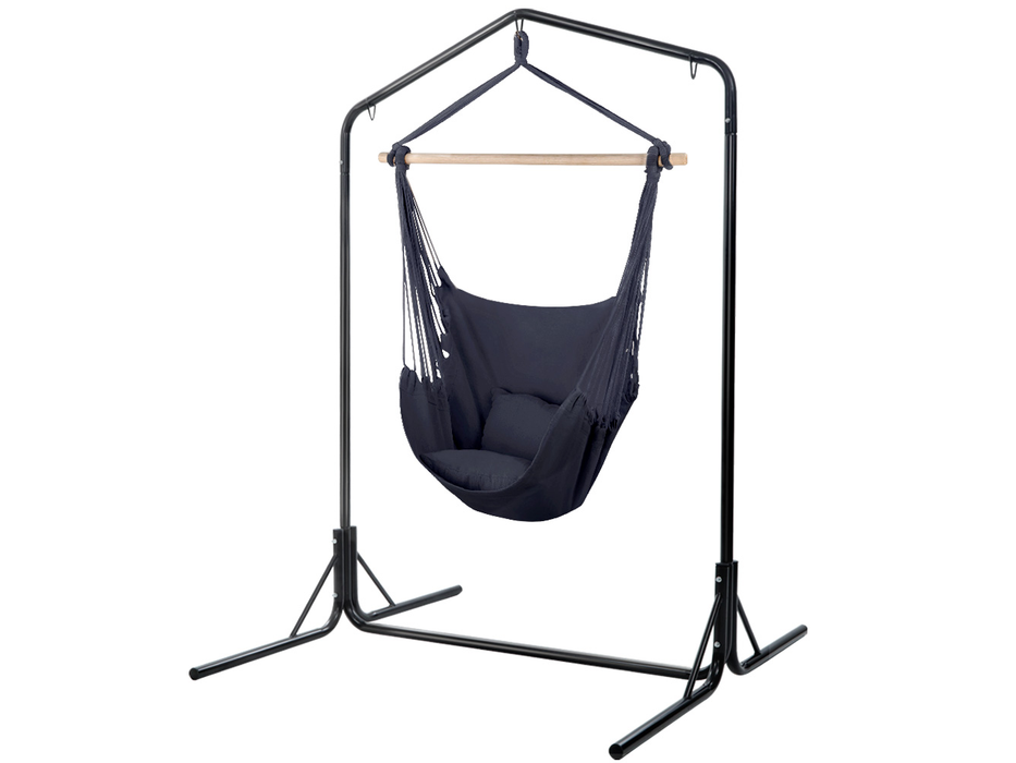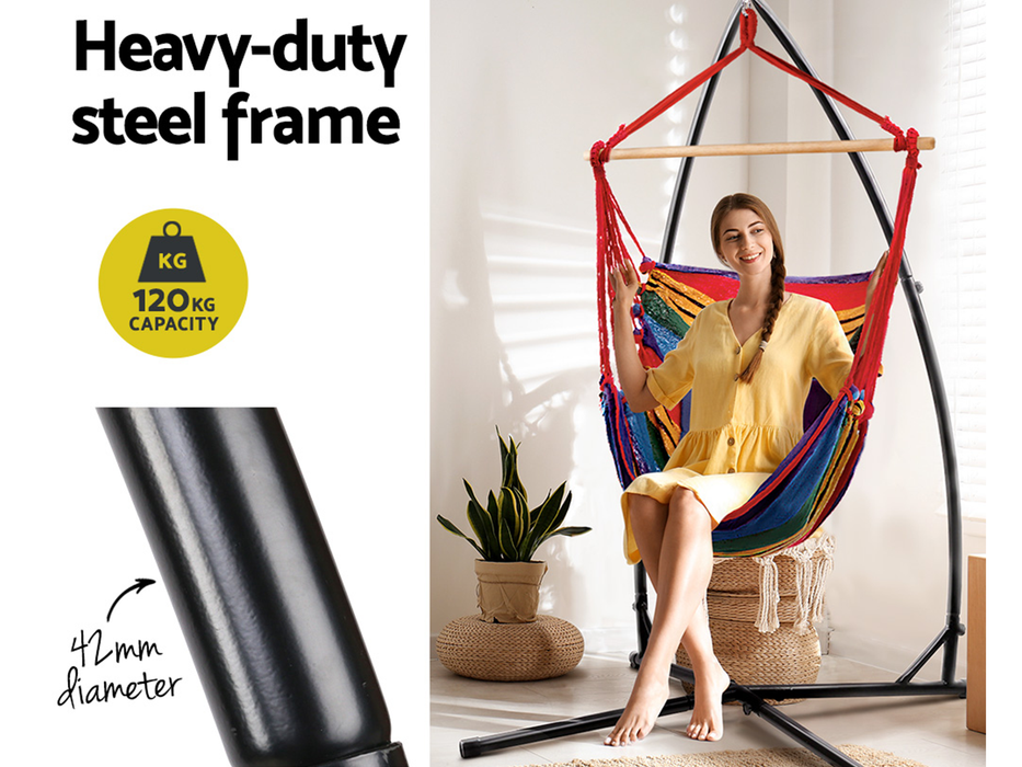 1 x Hammock chair 1 x Hammock Stand (Optional) 1 x Assembly Manual Assembly required: Yes Weight capacity: 120kg Limited 12 month warranty.