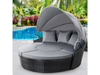 Live life in a perfectly relaxed setting with our Outdoor Day Bed. Built to exacting standards of durability and workmanship, the day bed a joy to use. Especially with its canopy that can be folded down when sunbathing or opened up to 900 to keep your chill-out moments well shaded from direct sunlight and intruding UV-rays. The day bed has a modular design and the base splits into four pieces so that you can alter the arrangement as you please. Put all four together to use as bed or separate to use as a sofa and individual seating. Constructed from heavy-duty powder-coated galvanised steel, hand-woven UV-resistant PE wicker and premium water-resistant polyester fabric, the day bed not only looks good but was made to last. Have it indoors or outdoors, for a unique resting spot or as a peaceful reading zone. The seat cushions and four matching throw pillows are extra thick for plush comfort and are easy to clean with removable and washable covers. Lie back with your loved one on our extra-large outdoor day bed and turn an ordinary day into an extraordinary one.