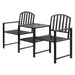 With its modern rustic vibes, the 2-Seater Garden Bench is the perfect outdoor tete-a-tete set to spend the day with your friends. Made from black steel with an impeccable weather-resistant finish, the bench has a strong structure with a smooth, easy-to-clean surface and curved edges. With two integrated armchairs, an adjoining table and a double-deck design, the bench has plenty of sitting and extra storage space. A built-in parasol hole will fit an outdoor umbrella and keep your guests dry and in the shade. The classic design ensures your comfort is always forefront and the trending style will stand the test of time. Enjoy the outdoors this season with a 2-Seater Garden Bench.
