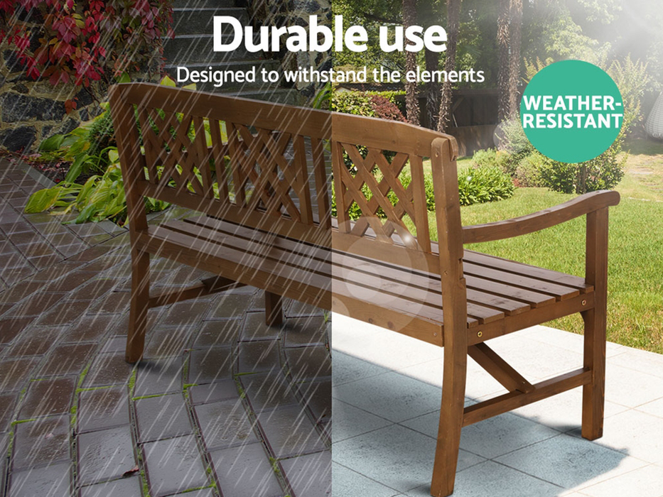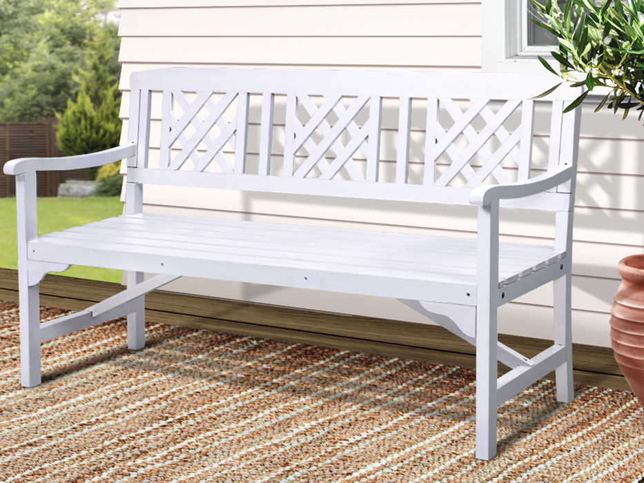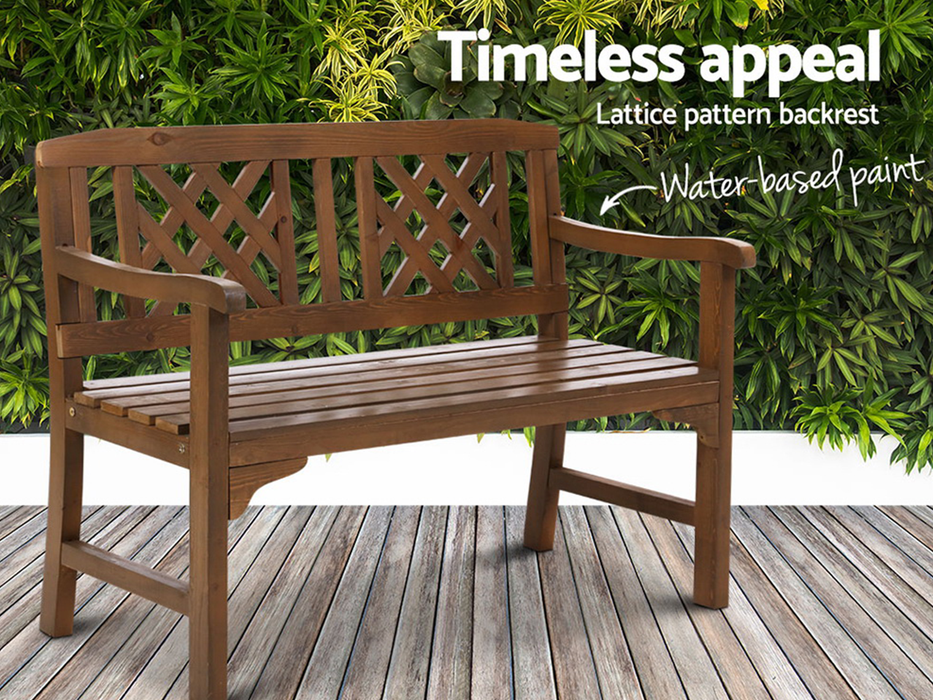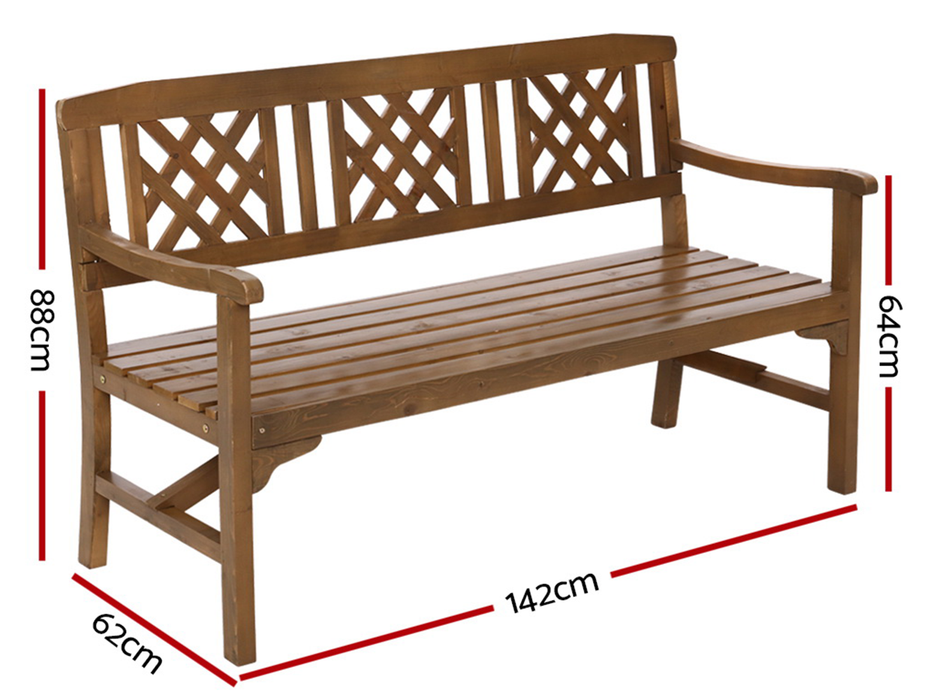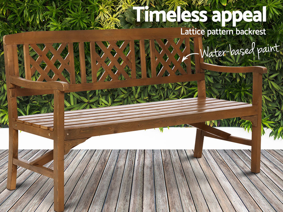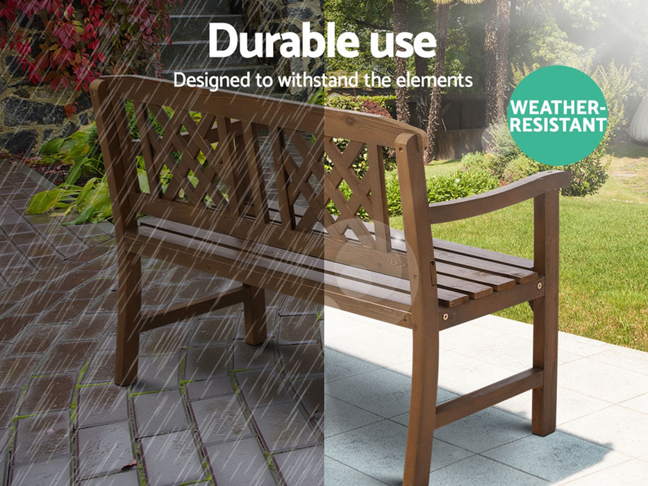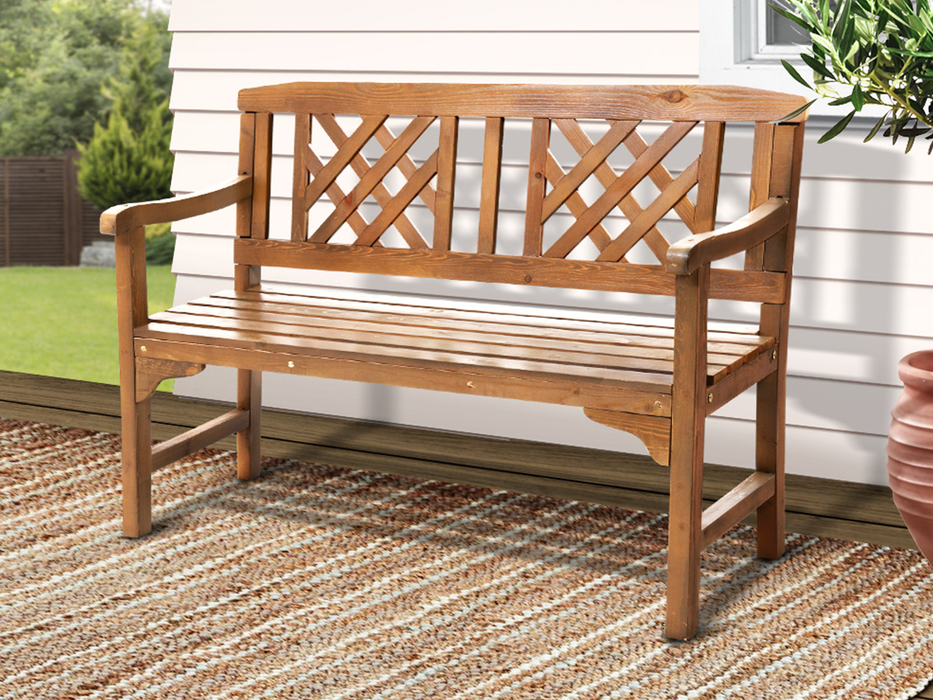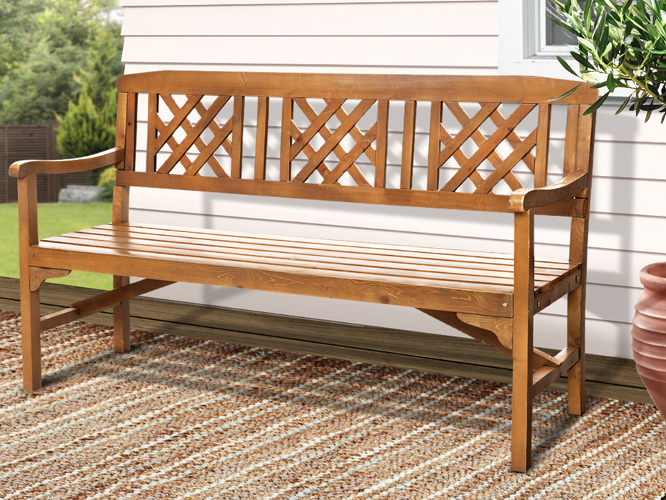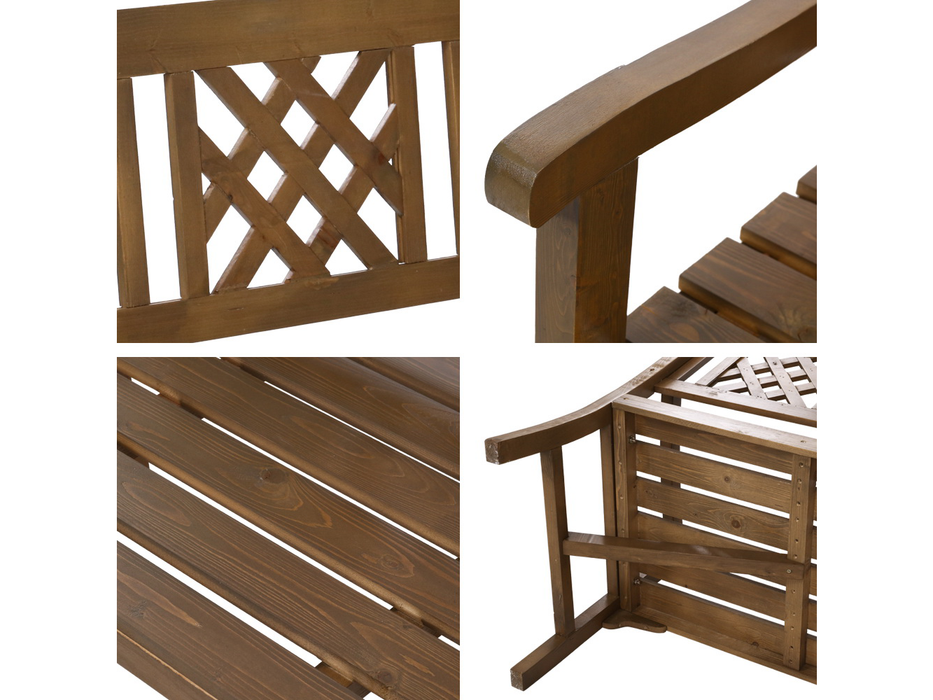 With its appealing rustic vibes, our Rolario Outdoor Bench is perfect for outdoor or indoor use. The beautiful natural fir wood construction is meticulously handcrafted to bring out its finest qualities. The finishing is impeccable as is the classic design that will certainly stand the test of time and trends. The lattice-pattern backrest adds character to the bench while also providing sturdy support. Not least, the bench is designed to ensure that your comfort is always forefront in its form and function.