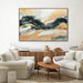 "Riptide Reverie" emerges as a captivating 120cm x 80cm canvas, where the raw essence of nature meets the delicate nuances of color. On a backdrop of pastel orange and luminous white, a striking wave of black takes center stage, reminiscent of the ocean's powerful riptides. This dark surge is elegantly punctuated with gleaming gold highlights, offering both contrast and a hint of opulence. The soft pastel hues above and below the wave gracefully counterbalance its intensity, crafting a harmonious visual narrative. The piece's thick texture further accentuates its tangible depth and emotion. Framed within a refined dark wood border, "Riptide Reverie" stands as a testament to the profound beauty of abstraction and the masterful touch of hand-painted artistry.