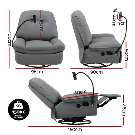 View full detailsSwivel Recliner Chair Leather Rocking Reclining Sofa‚Äã with Charging Ports LED Brown