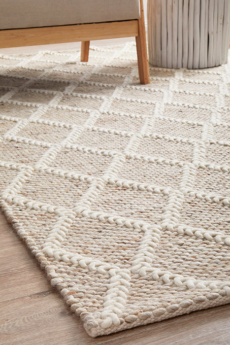 Huxley features a stunning diamond pattern that will complement any living space with it's timeless and elegant design. This contemporary flatwoven rug features a beautiful array of warm natural tones that make it a stunning statement piece for a contemporary Scandi or coastal style.