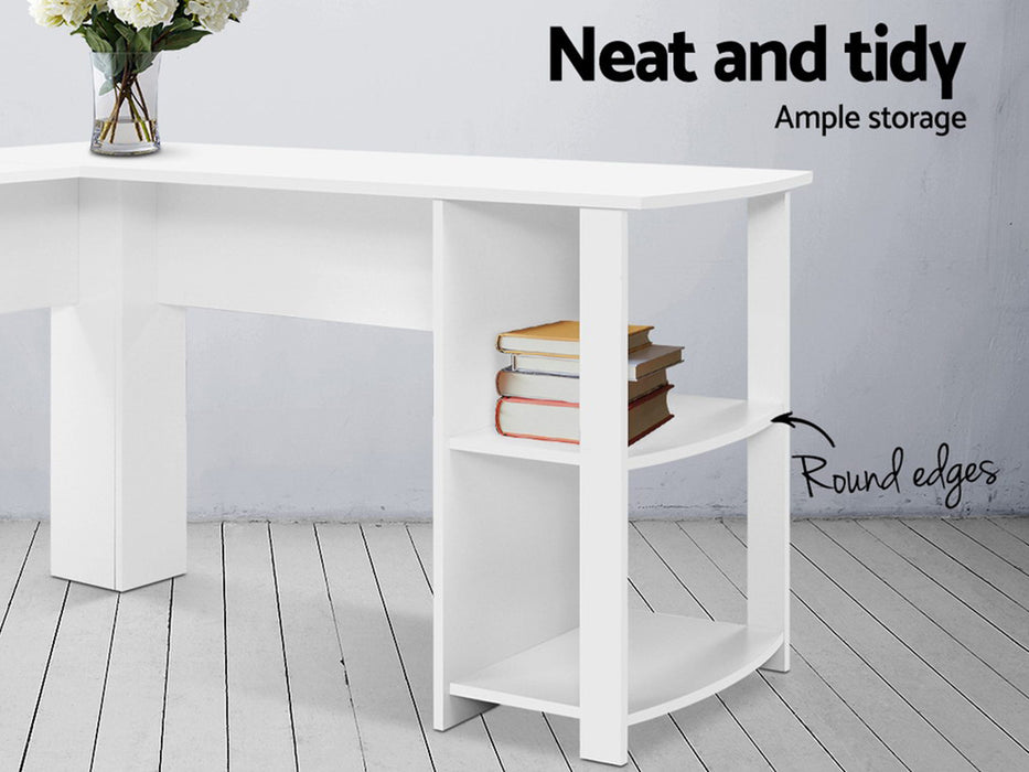 You can get really productive with our Baulon Desk. With an L-shaped configuration, the desk allows you to have your attention on everything in one glance. Total efficiency and practicality. And with ample storage space from the open shelves, the desk enables all your working essentials to be close at hand. Better still, the desk also comes with a cable grommet to enable any cabling to be neatly streamlined under the desk and free the desk of any mess. Naturally, you will also appreciate the sturdy desk structure with its durable 15mm thick particle board construction and smooth melamine finish. Not least, the space-saving desk comes with an anti-slip base to ensure you work good and steady in every way.