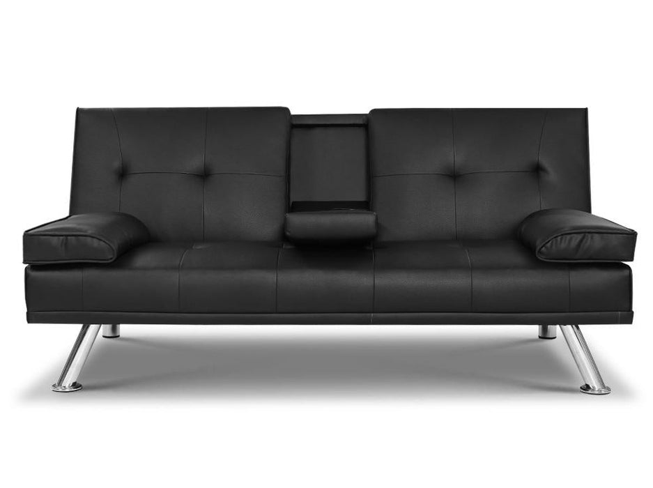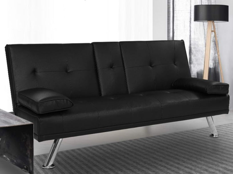 Snuggle up with our 3-Seater Sofa Bed that functions both as a gold class cinema lounge and as a spare bed for unexpected overnight guests when needed. Constructed with a wooden frame and filled with extra-thick foam, our premium PU leather upholstered sofa bed is sturdy in every way. And the chrome steel legs also add a very modern touch to the entire ensemble. It only takes a few minutes to transform from sofa to bed and its three adjustable reclining positions let you enjoy your leisure at your preferred settings. The padded armrests are fast attached to the sofa bed and can be moved to be used as pillows. The middle panel can be pulled down to become a table that holds two hidden cup holders, so that you always have your drink handy to enjoy the full cinema experience right in your living room. Built to generous proportions, our 3-seater sofa bed can support up to 200kg in weight. Front row seats by day or lovely bed by night. You can have it all with just one sofa.