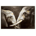 "Tusker Ties" captures a heartwarming moment between a father and child, represented by two majestic elephants. Set against a deep, dark backdrop, the elephants become the canvas's focal point, their intricate details and expressions meticulously hand-painted to bring them to life. The adult father elephant, symbolic of strength and wisdom, gently touches trunks with the young one, their eyes locked in a gaze that speaks volumes of love, protection, and trust. The baby elephant, with its innocent eyes and playful demeanor, reciprocates this gesture, reflecting the universal bond between parent and offspring. The golden hues of the champagne frame beautifully complement the artwork's depth and emotion. "Tusker Ties" stands as a testament to the unspoken bond shared between generations and the memorable moments that define them.