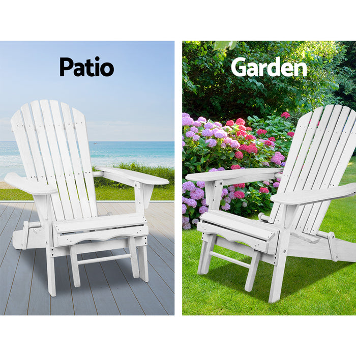 Shoot the breeze with this uber relaxing Adirondack Chair and Footstool Set. Ever since the modern Adirondack Chair makes its first commercial appearance in 1932, it has been a popular choice for chilling and relaxing in the backyard, deck patio or even front porch. Our Adirondack chair has followed the age-old tradition of producing a chair that is sturdy and longlasting, and retaining pertinent details such as the supportive high back, smooth edges, bevelled highlights, and flat, extra wide armrests. And with the matching slide-out footstool, you can now stretch your leisure even further and have a great time putting your legs up after a hard day. The entire set is painted with eco-friendly water-based paint to preserve the Hemlock wood finish and improve its all-weather condition use. And when not in use, you have the option of folding the chair away for safe keeping.
