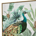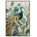 "Golden Plume" is a vibrant celebration of nature's beauty and artistry. At its heart lies a magnificent peacock, its vibrant hues and intricate patterns capturing the essence of this regal bird. Surrounded by abstract florals and leaves, the peacock stands as a beacon of elegance and grandeur. What truly elevates this piece is the meticulous gold accentuation, especially on the peacock's feathers, adding a touch of opulence and making the bird shimmer with every play of light. The artwork is a harmonious blend of hand-painted elements and print, ensuring that every detail is accentuated. Encased in a dark wood frame, "Golden Plume" beckons viewers to delve into the intricacies of the design and appreciate the mesmerizing dance of colors and patterns.