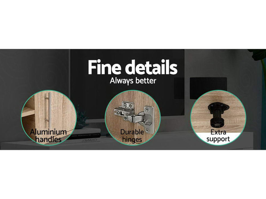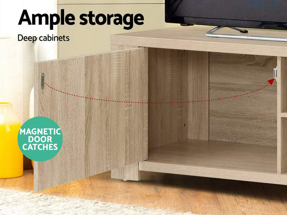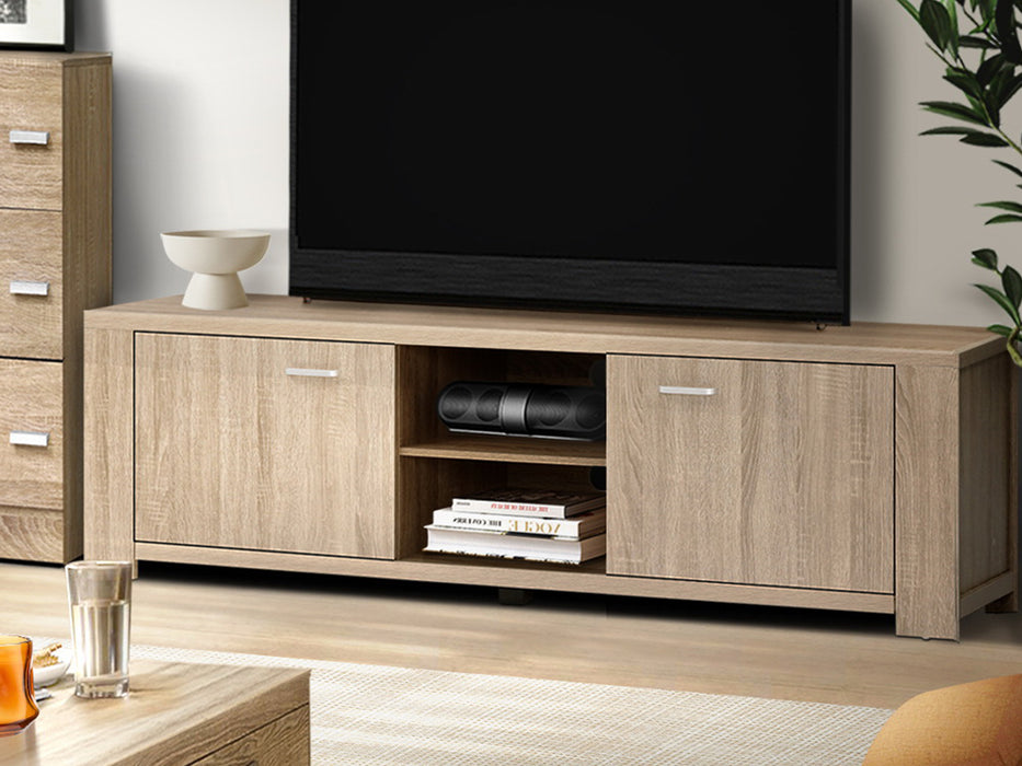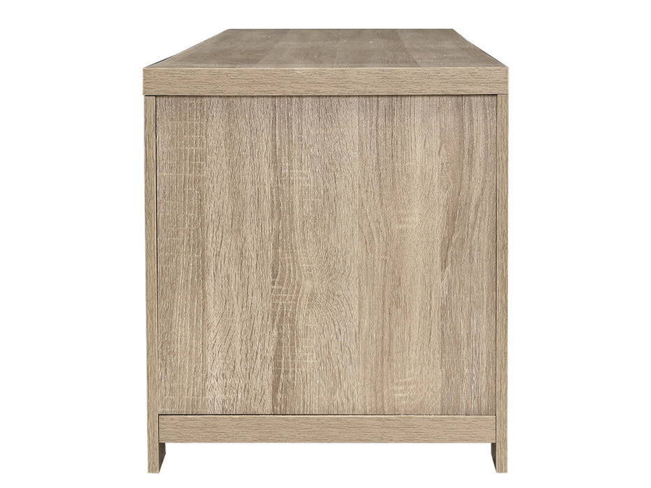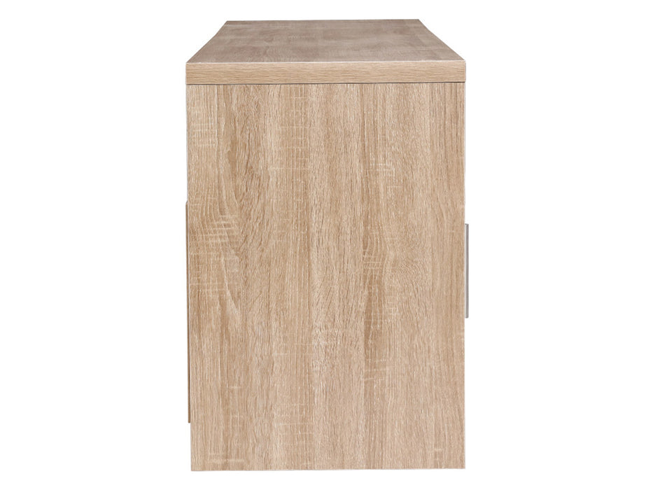 Your treasured home entertainment system deserves the best cabinet for it. And that is why our Bronson TV Unit is the ideal choice for you. Incorporating a contemporary design and presented with durable and strong 30mm thick honeycomb board and 15mm thick particle board, our entertainment unit displays great craftsmanship with equally fine hardware to ensure trouble-free use every time. The natural woodgrain finish is beautiful and smooth to the touch, making the unit not only good-looking but easy to clean and maintain. And it offers ample storage space with two open shelves and two deep cabinets with magnetic door catches for all your entertainment essentials. Better still, the ensemble features smooth handles for a sleek appearance and pre-drilled holes to keep all your cables tidy. The simple and linear design means that the unit will suit any decoration and be the perfect addition to your modern living room. And best of all, you can also match with other products from the Bronson series for the complete simple-natural look.