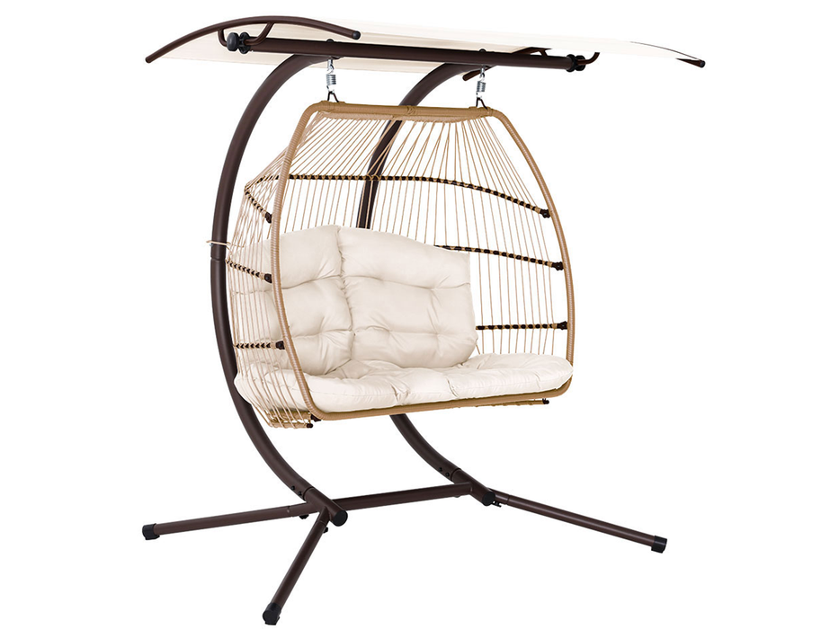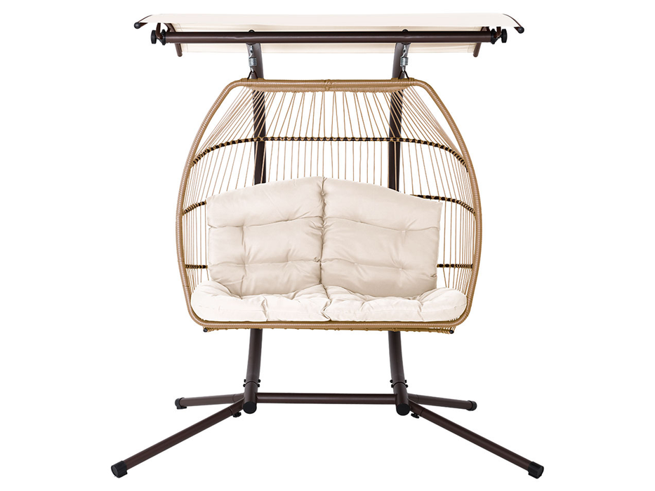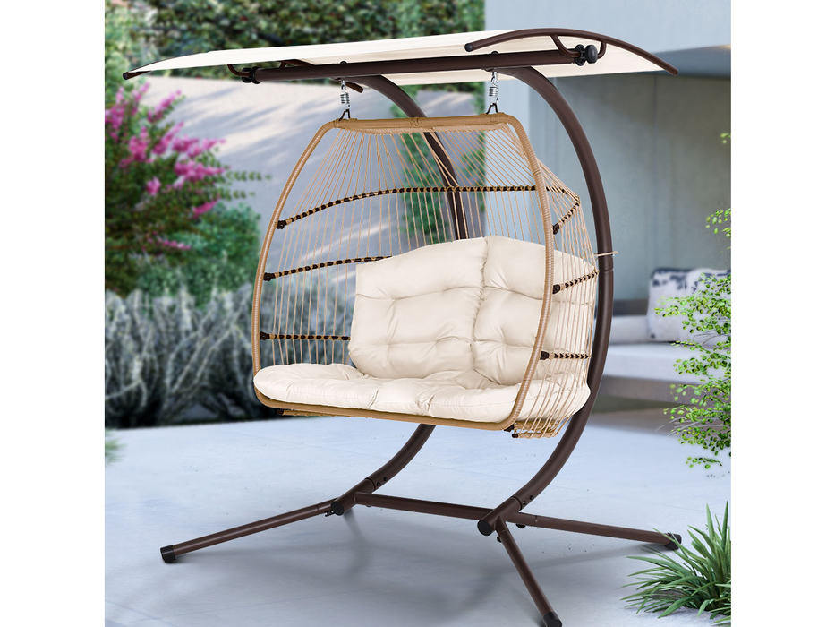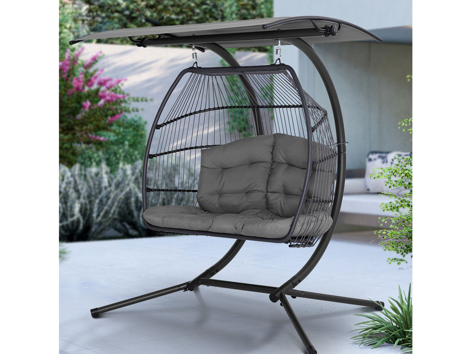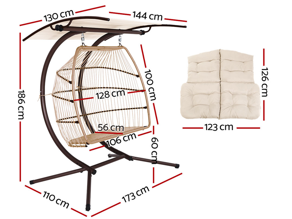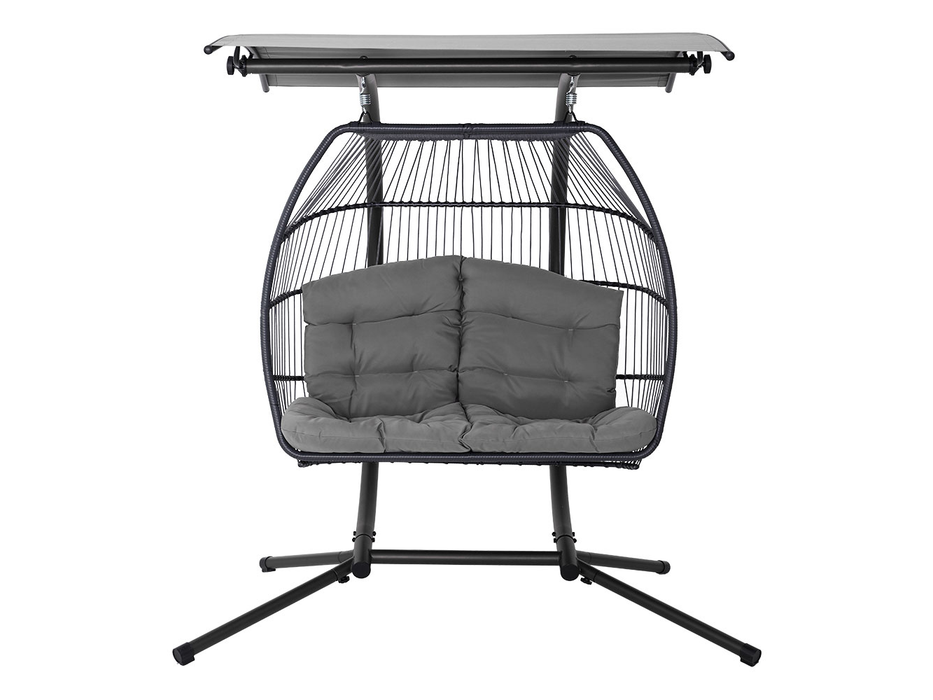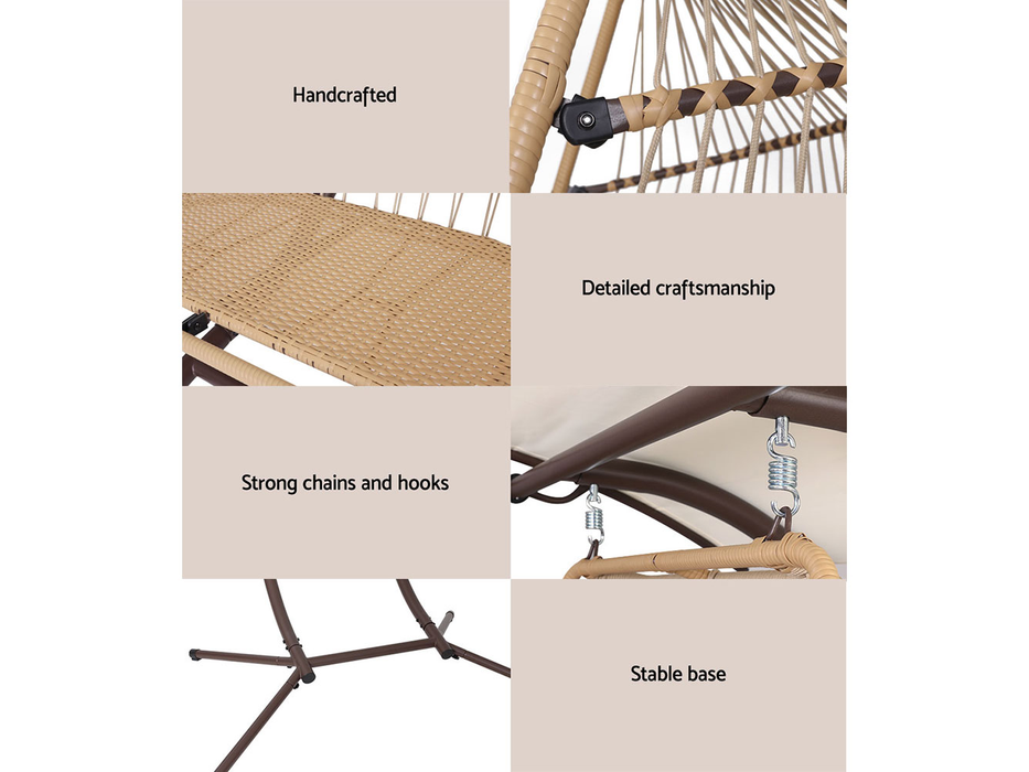 Otherwise known as the hanging egg chair, our Cantona Hanging Swing Egg Chair is the epitome of ultimate relaxation with a cool and exotic vibe. With its 100% hand-woven UV-resistant resin wicker, the pod chair is beautifully handcrafted and well hung on a steel pole for stability and strength. Plus, the adjustable canopy can be angled to suit your shading or completely removed for a wondrous tan. The powder-coated steel frame finish ensures that corrosion will never be an issue while the soft, fully-padded cushioned seat offers plush comfort for daydreamers and leisure seekers alike. Best of all, it seats two and has ample space for relaxation with a weight capacity of up to 200kg. Sit back with your loved one and turn an ordinary day into an extraordinary one. Hang cool people!.