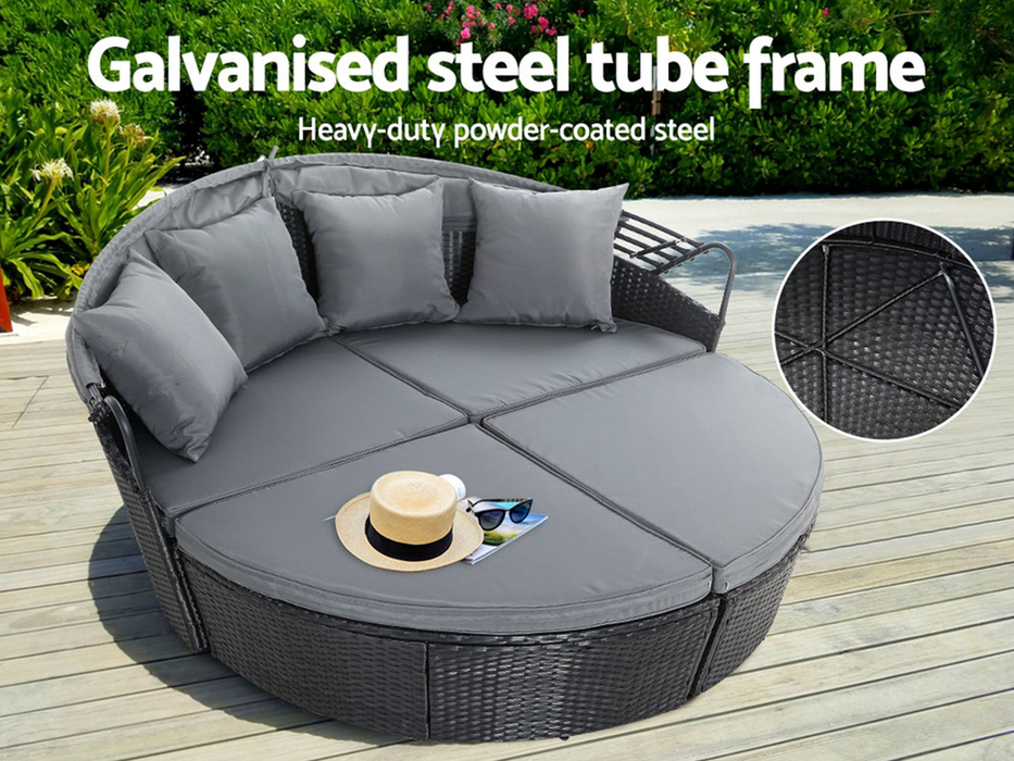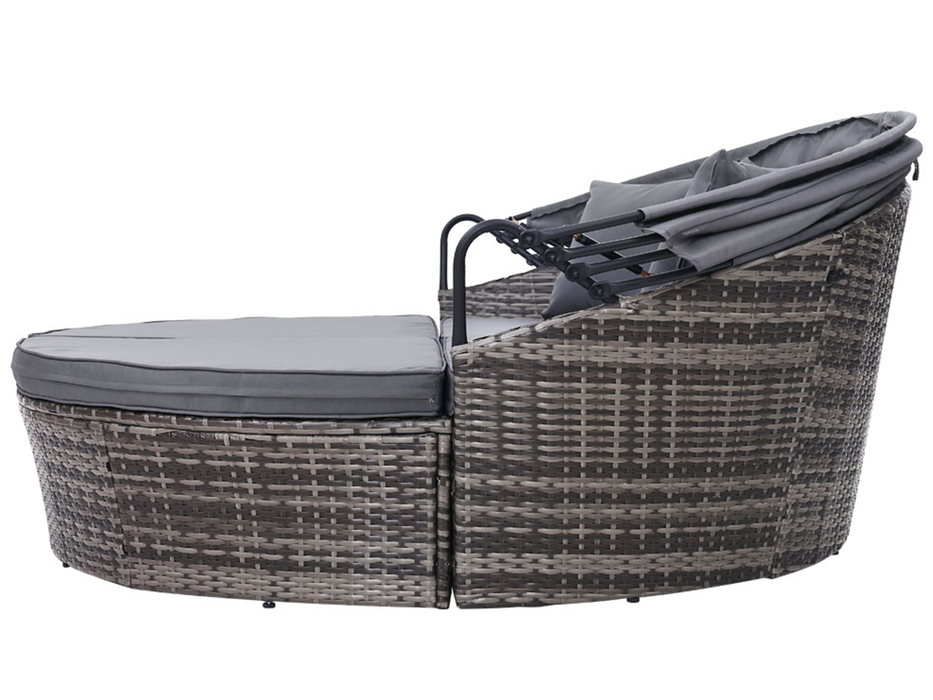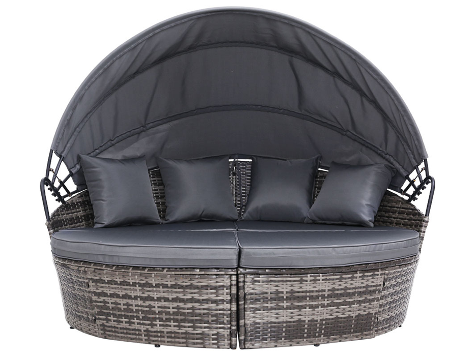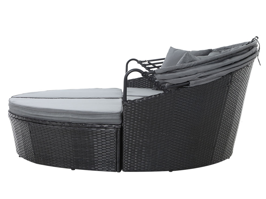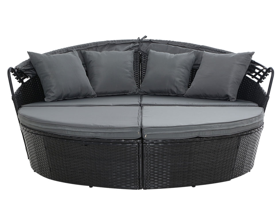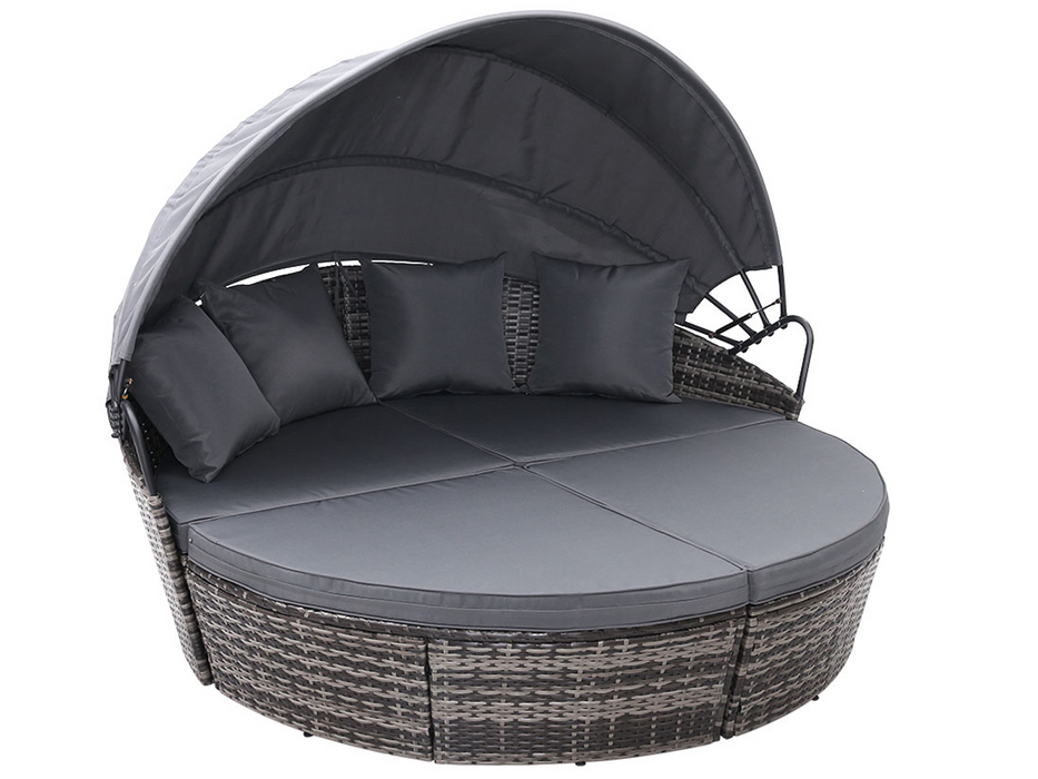 Live life in a perfectly relaxed setting with our Outdoor Day Bed. Built to exacting standards of durability and workmanship, the day bed a joy to use. Especially with its canopy that can be folded down when sunbathing or opened up to 900 to keep your chill-out moments well shaded from direct sunlight and intruding UV-rays. The day bed has a modular design and the base splits into four pieces so that you can alter the arrangement as you please. Put all four together to use as bed or separate to use as a sofa and individual seating. Constructed from heavy-duty powder-coated galvanised steel, hand-woven UV-resistant PE wicker and premium water-resistant polyester fabric, the day bed not only looks good but was made to last. Have it indoors or outdoors, for a unique resting spot or as a peaceful reading zone. The seat cushions and four matching throw pillows are extra thick for plush comfort and are easy to clean with removable and washable covers. Lie back with your loved one on our extra-large outdoor day bed and turn an ordinary day into an extraordinary one.