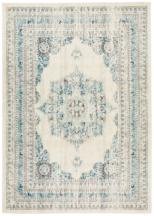 This elegant set from the Century range features a traditional design heavy on floral and arabesque laid on an off white, aqua and earthly toned scheme mixed hand finishing textures which complements a contemporary set up to any point or setting. The Century White range presents a Persian influence piece made from 100% polypropylene material, one is definitely assured that it is highly resistant to stain, durable, easy to clean and its colors are non-fading.