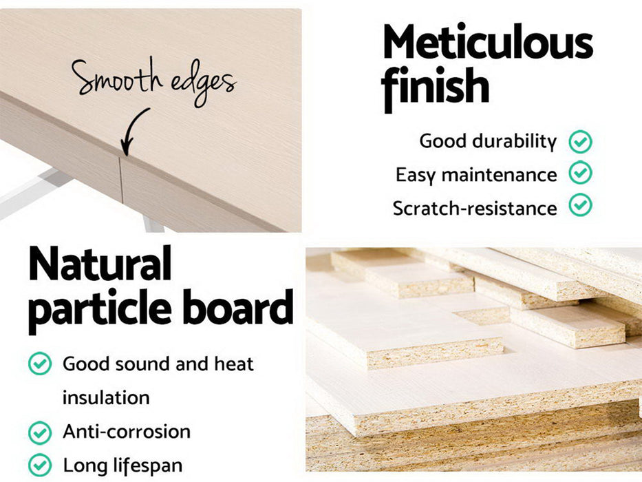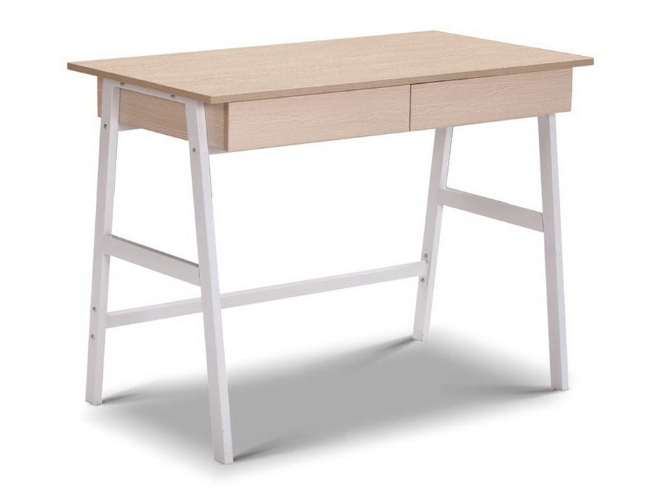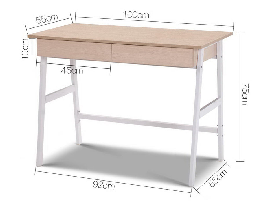 The exceptionally thick particle board with melamine veneer table top gives not only a smooth feel but good durability and easy maintenance with longlasting use. Two storage drawers with concealed handles provide ample storage space for all your work essentials and more. Not least, the asymmetrically-angled legs and under-desk steel slats ensure better load-carrying stability and facing up to robust use.