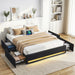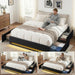 Double Bed Frame with Storage Drawers RGB Lights Charging Station Upholstered Fabric
