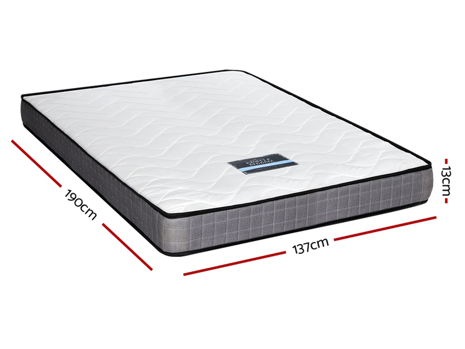 Double Mattress Thickness: 13cm Double: 190cm x 137cm x 13cm Firmness: 6.0 medium firm Wire thickness: 2.3mm