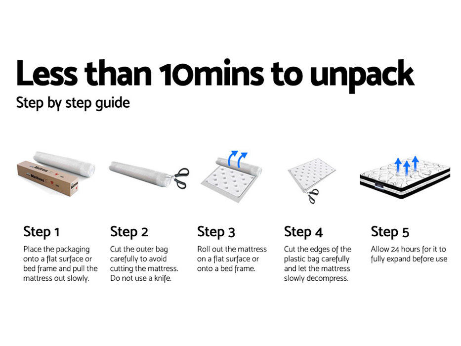 Package Contents 1 x Giselle Bedding Alessio Series Mattress Mattress-In-A-Box 1 x Plastic bag cutter Vacuum packaging: Item will expand to its normal shape within 1 day after unpacking Suppliers 12 Months Warranty (Free 5 Year Extended Warranty when you register your product within 30 days of your purchase)
