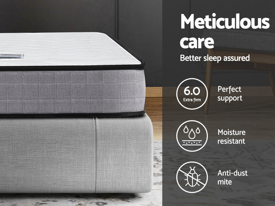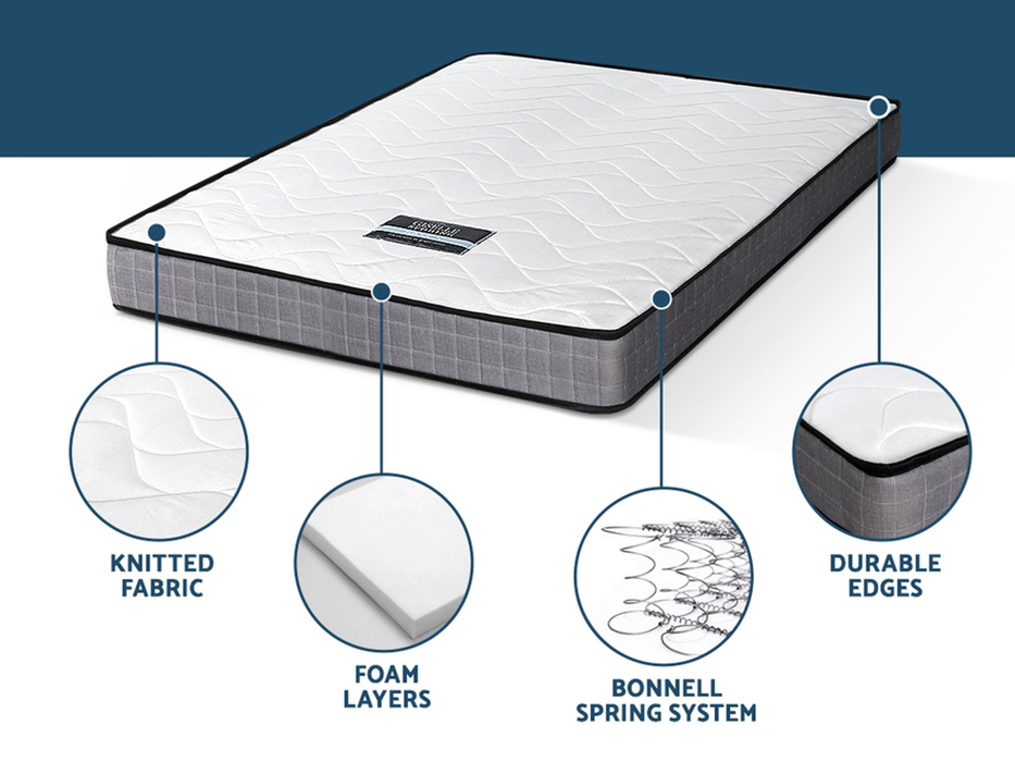 Who needs a medium firm mattress? The answer is someone who’s waking up with muscle and body aches every day. If your mattress is not providing optimum support, our Dreamlite Bonnel Spring Mattress with 13cm thickness comes to your rescue. Crafted from quality materials with medium firm firmness level, our mattress is an epitome of excellent craftsmanship and innovative sleep technology. The mattress is wrapped in soft quilting top layer and luxury knitted fabric and comes with high-density foam that ensures you stay comfortable while you’re fast asleep, and the use of hypoallergenic materials in its construction makes it suitable for those at risk of developing any allergies. It also comes treated for dust mite and mould resistance, which offers you a peaceful night’s sleep. The mattress also features enhanced 6-turn coil system for ultimate support and ensures zero partner disturbance so no waking up in the middle of the night due to motion transfer issues. It offers excellent support with even weight and pressure distribution. Additionally, our mattress is hygienically constructed and doesn’t contain harmful chemicals that can affect your sleep. Better night sleep is assured with Dreamlite Bonnel Spring Mattress. Available in Single, King Single, Double and Queen sizes.