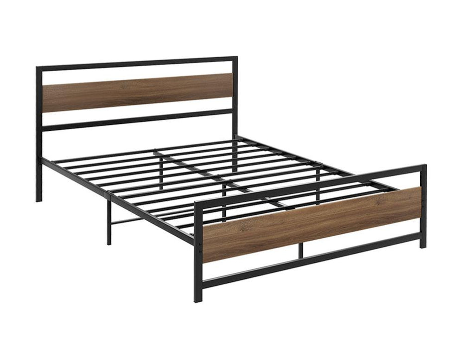 Looking for an affordable bed frame that doesn't compromise on quality or style? Look no further than the DREW Bed Frame. This industrial-style bed frame features an enhanced powder-coated and rust-resistant steel frame with strongly reinforced steel centre slats to keep your mattress securely in place. Topped with a pale wood MDF headboard and foot, this frame creates a clean, classic look that will transform your bedroom into a peaceful oasis of relaxation. It features ample space underneath to fit trundle drawers or other storage solutions, perfect for keeping your bedroom tidy. Perfectly fitted slots make the frame easy to assemble while rubber foot caps keep your floors protected from scratches. The simple, industrial-style design ensures that it will complement any bedding or decor you choose to pair it with. Practical, functional and stylish, the DREW Bed Frame is an easy purchase.