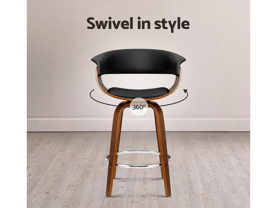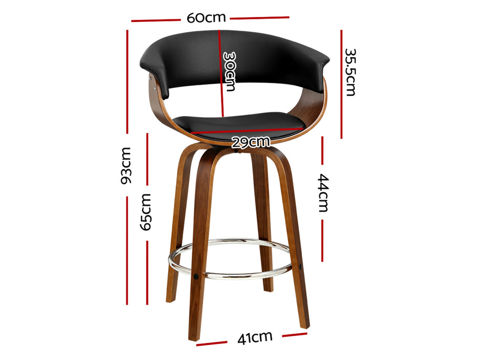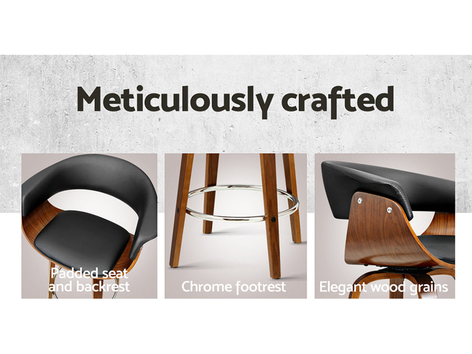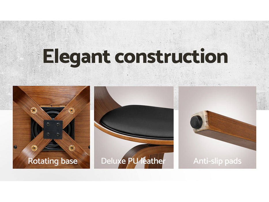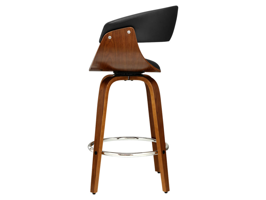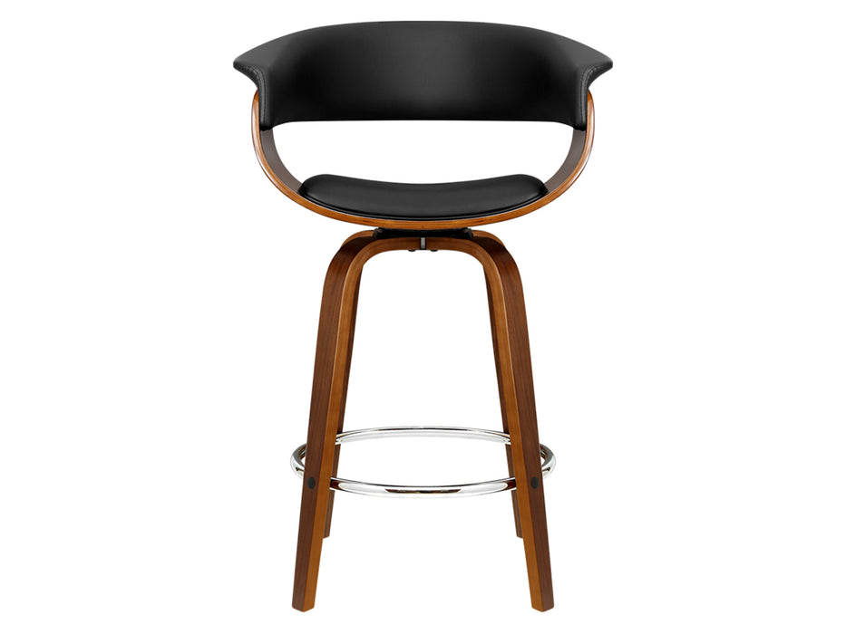 Wood, metal and deluxe PU leather in total harmony to create a luxe feel. Meticulously crafted with solid plywood with a stunning walnut finish for the frame, the bar stool features a thick padded faux leather seat that rotates fully, a mid-height backrest which provides ample support while the anti-slip floor protectors at the bottom of the legs ensure no scratches are left on the floor.