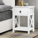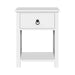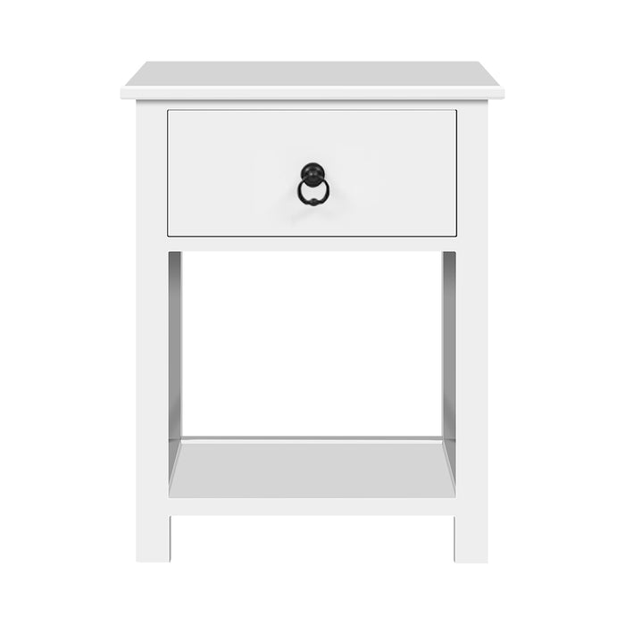 Many bedside tables look mundane and ordinary. But not our rustic retro-inspired Bedside Table that exudes character all over. Crafted from solid Paulownia wood for its durable quality, our bedside table also features a smooth MDF board top for ultimate strength and resilience. It is also finished in a moisture-resistant non-toxic paint to enhance its eco-friendliness appeal. The generous-sized storage drawer is fronted by a vintage-style ring handle and opens up to ample square centimetres of space for your bedside essentials. Use the bottom shelf to store your reading materials or display anything that meets your fancy. Of course, our bedside table need not be confined to your bedside. It also sits well next to your favourite armchair or at any end of your lounge set. Or even used in your cafe, restaurant or shop for some rustic charm. Best of all, the bedside table comes fully assembled so that you can start using it straight away.