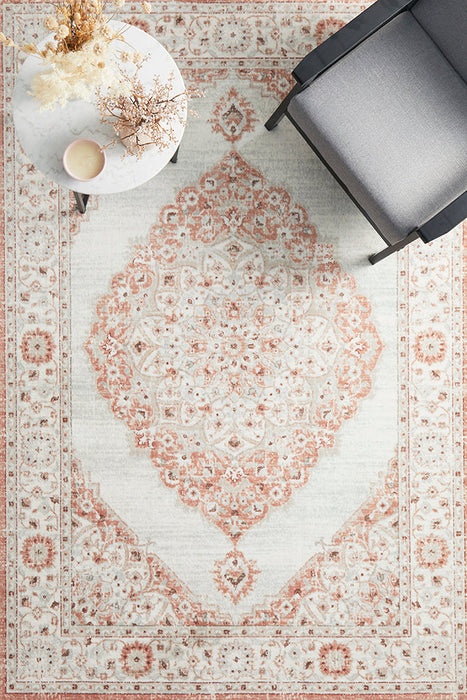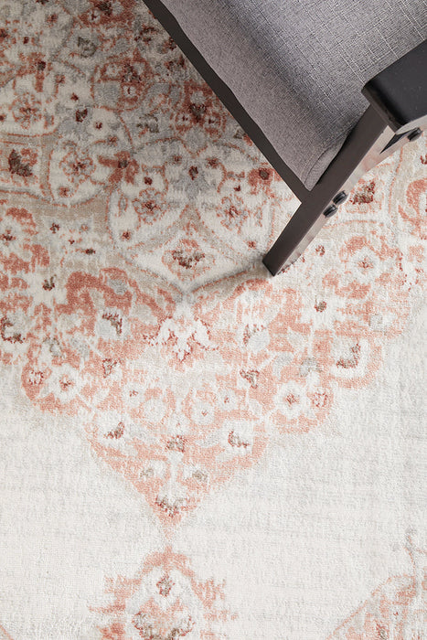 Emotion is a truly stunning transitional piece with a beautiful blend of soft blush peach and ivory hues, topped with ornate floral patterns and an intricate diamond design.