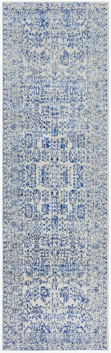 Round out any room with a touch of global inspiration with this eye-catching area rug. Machine-woven in Turkey, it showcases a distressed intertwining floral and vine motif with botanical accents for a pop of pattern. Multiple hues mingle to offer a splash of azure color, while subtle striations tone down the design with a bit of antiqued appeal.