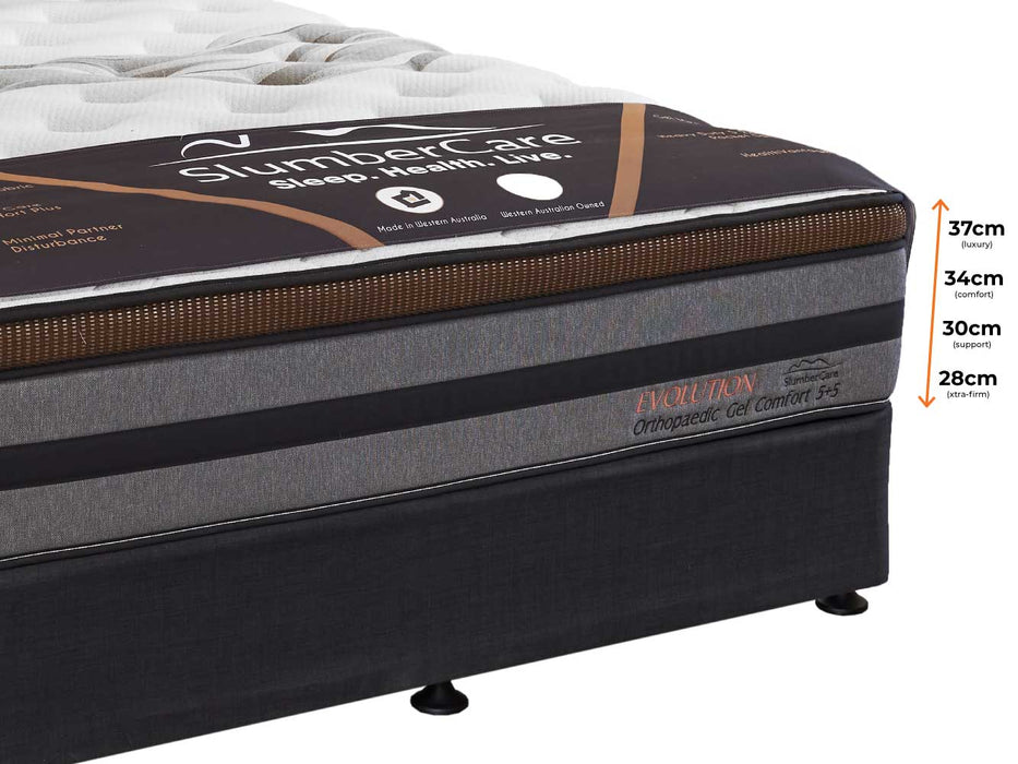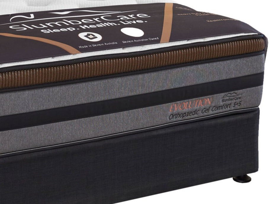 Experience nights of restful sleep with our Evolution Orthopaedic Gel Mattress. Handcrafted with comfort and support in mind, in Perth, Western Australia. This mattress is designed to suit every individual's comfort needs, and is available in four feels – Extra Firm, Firm (Support), Medium (Comfort), and Plush (Luxury). Each one offers a rejuvenating sleep, so you can wake up feeling fresh every day.