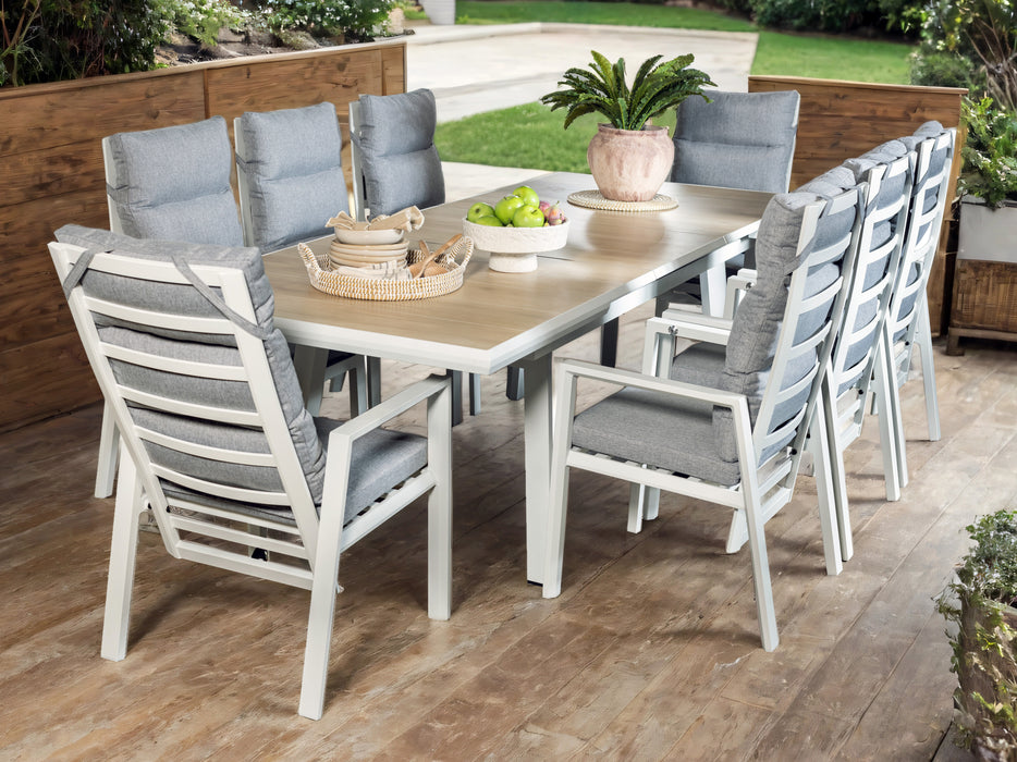 Elevate your outdoor dining with the Fauna 9Pce Ext. Outdoor Dining Set, where luxury meets functionality in perfect harmony.