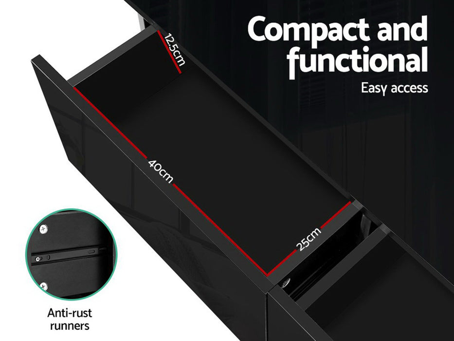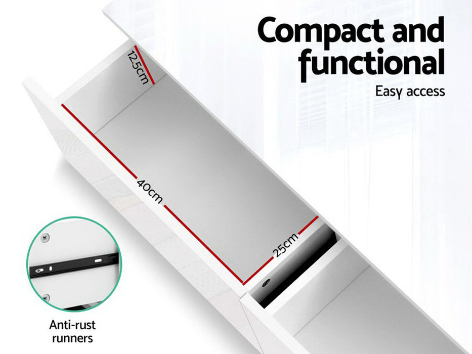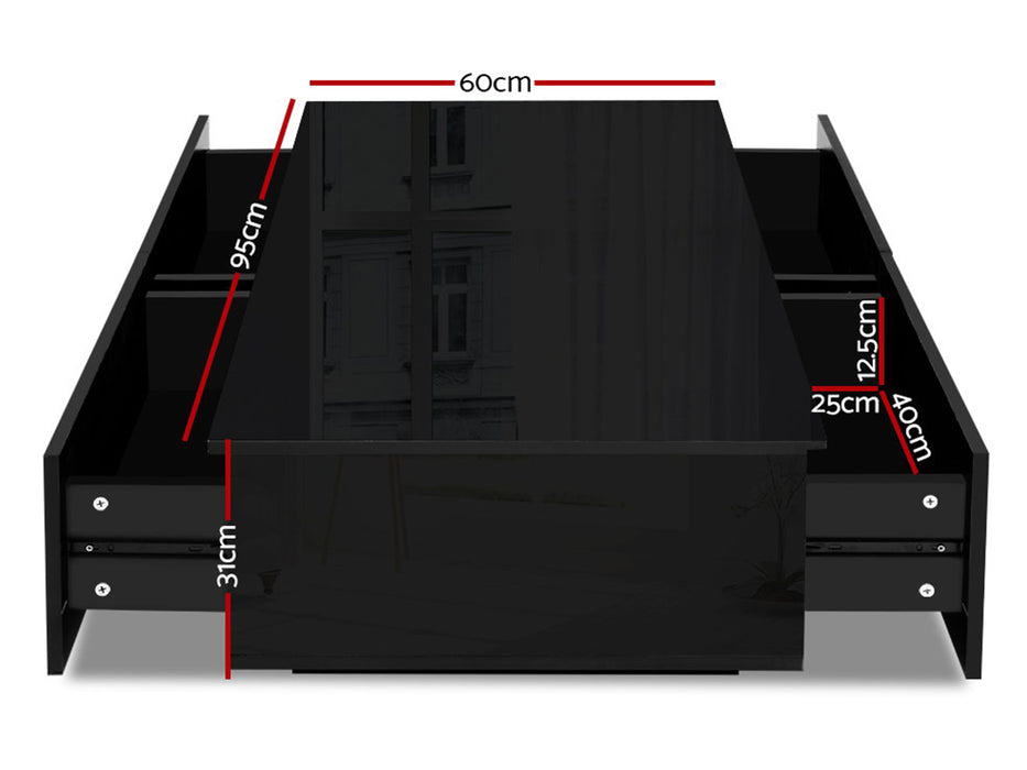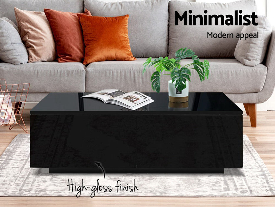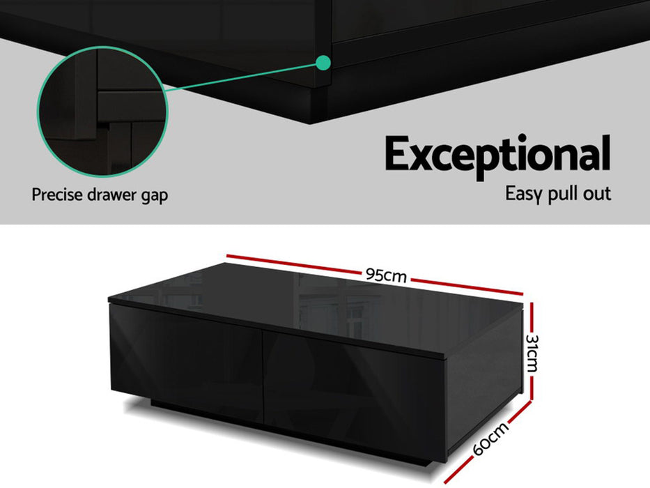 Keep all your books, magazines, remote controls and other entertainment paraphernalia from cluttering up your living room with our Francis Coffee Table. Four drawers, with two on each side, provide flexibility and ample storage space for all your necessities. The longer drawer boards and anti-rust runners also allow for a smooth and hassle-free operation at all times. The table is not only practical but also stylish with a handle-less design to maintain a sleek appearance. The contemporary and linear design means that the table will be the perfect addition to your modern living room. Or any other room, for that matter. Made of quality particle board, the table is built to last. And the UV high-gloss finish not only makes the table attractive, but also easy to clean.