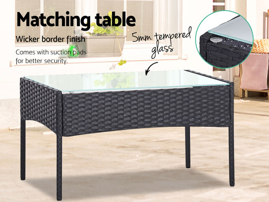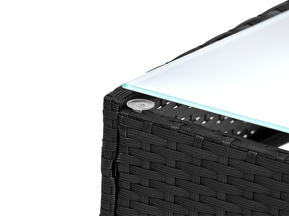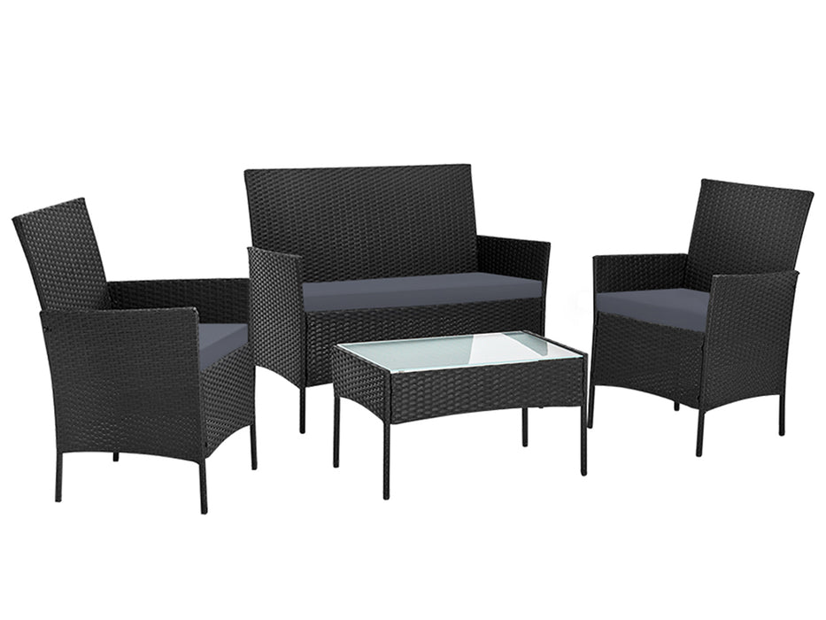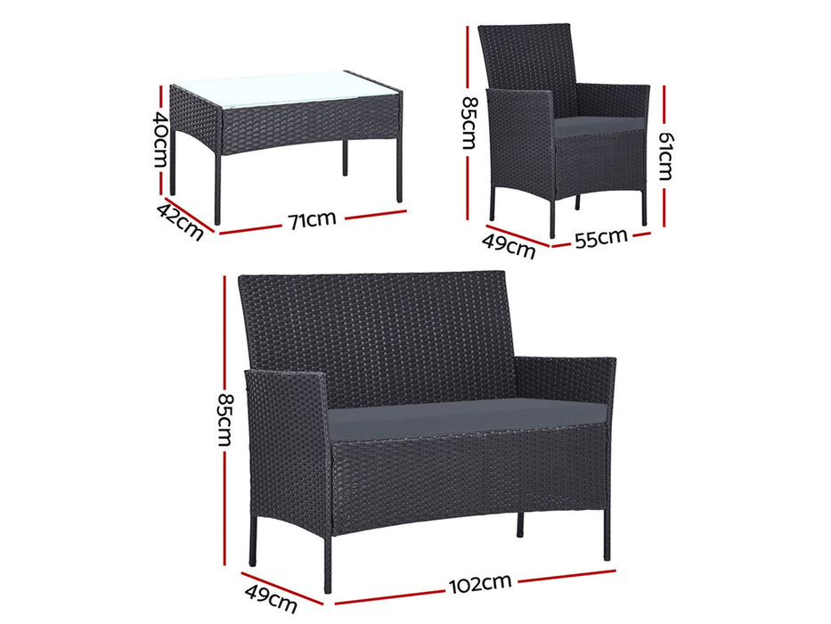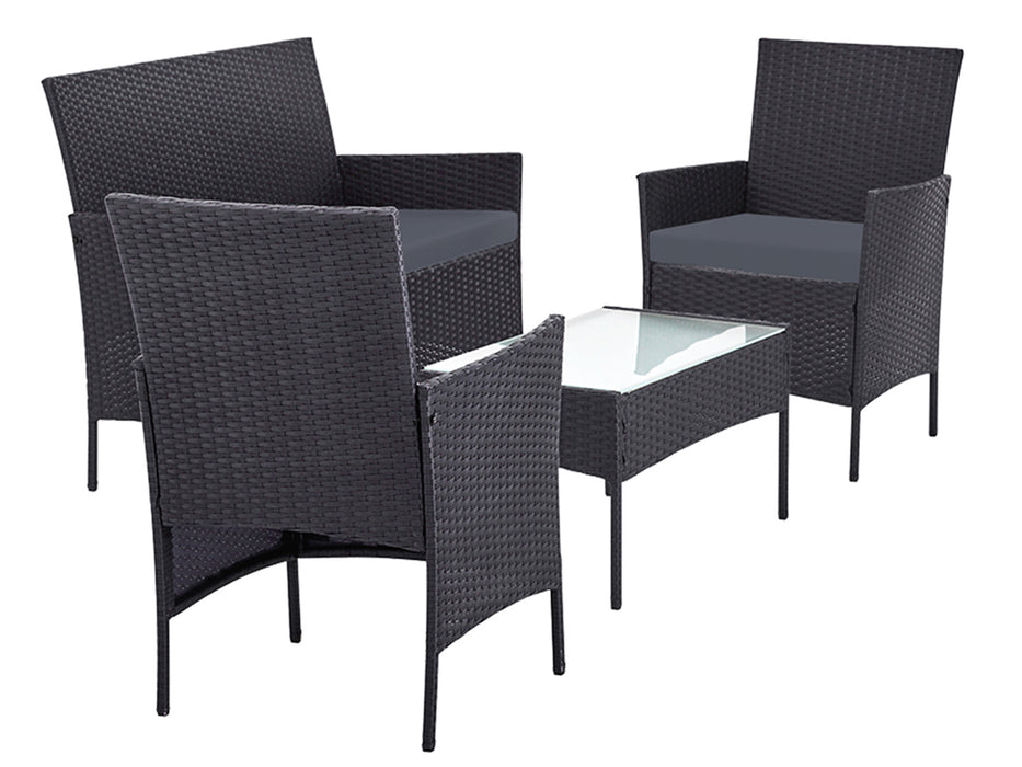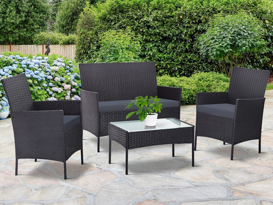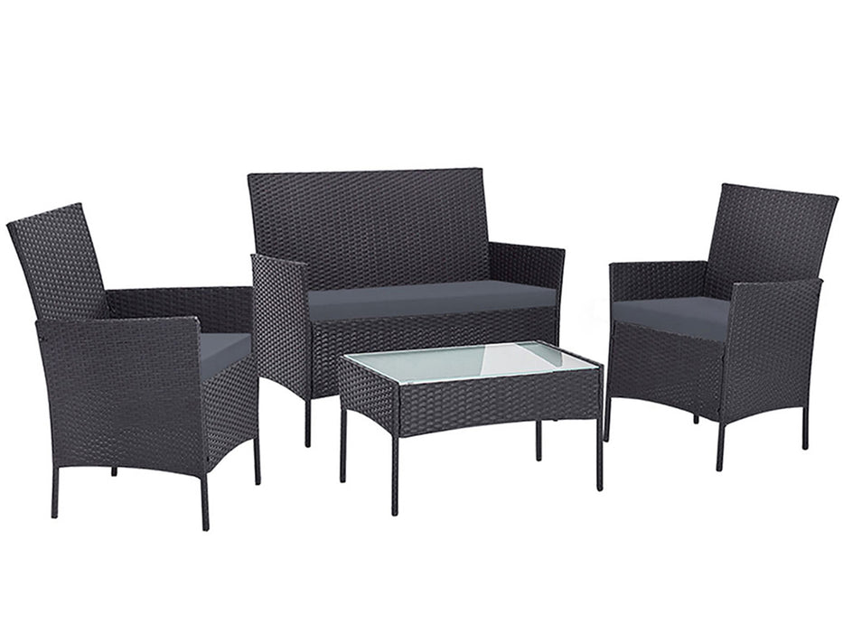 Meticulously crafted, our Howell 4 Piece Outdoor Set comprises a chic loveseat, two single armchairs and one matching side table for a beautiful integrated look. Its presence will definitely add panache and style to your deck, patio or even living room. Made of eco-friendly PE wicker and a sturdy steel frame, this set is designed to last through all weather and the test of time. The 5mm tempered glass top for the side table also ensures a strong and safe use with total peace of mind. Not least, the cushion covers are removable and washable to maintain their pristine appearance.