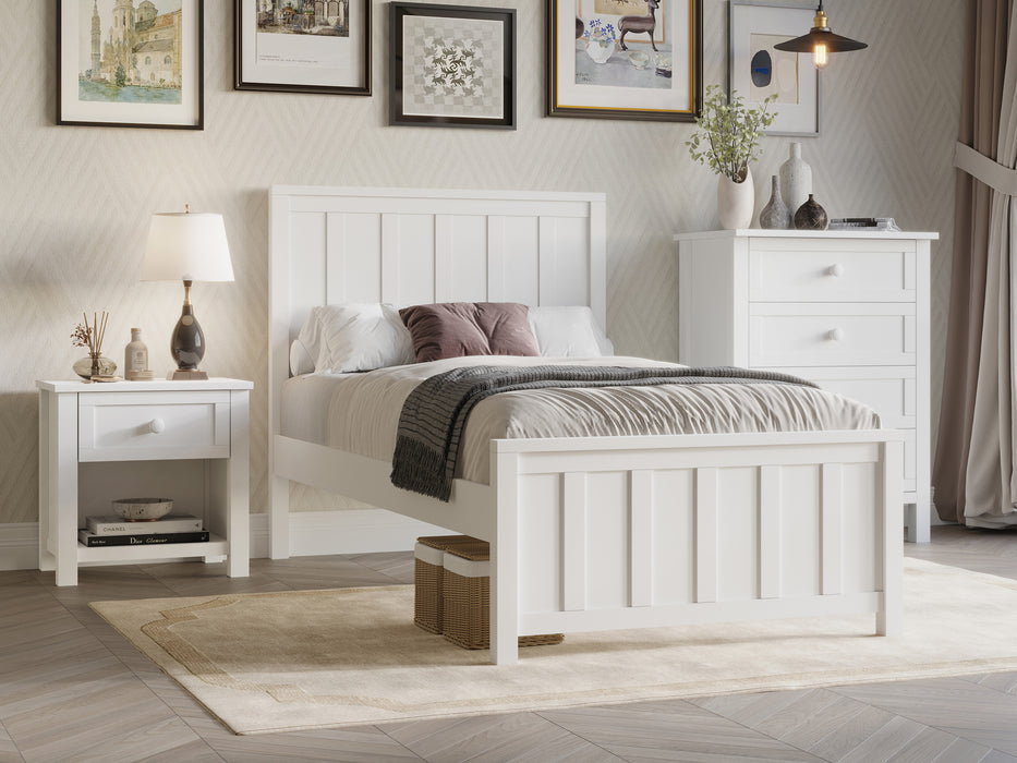 Looking to complete the look? Pair the Jesse Bed with matching white tallboy or a bed frame for a cohesive, effortlessly elegant bedroom ensemble.