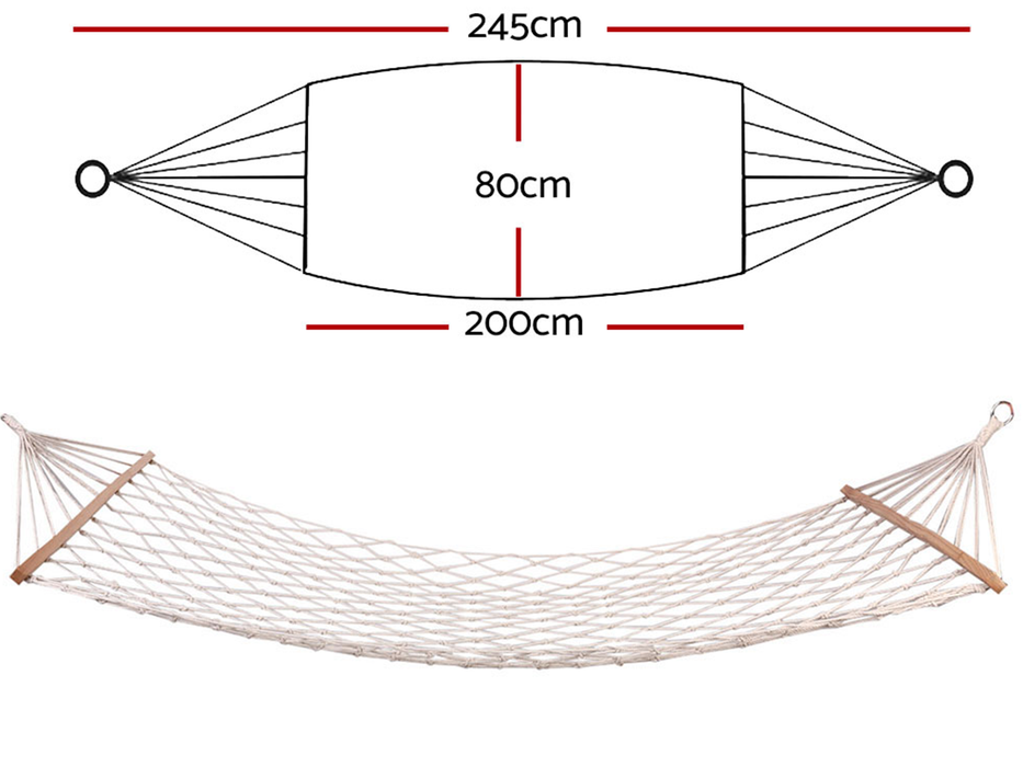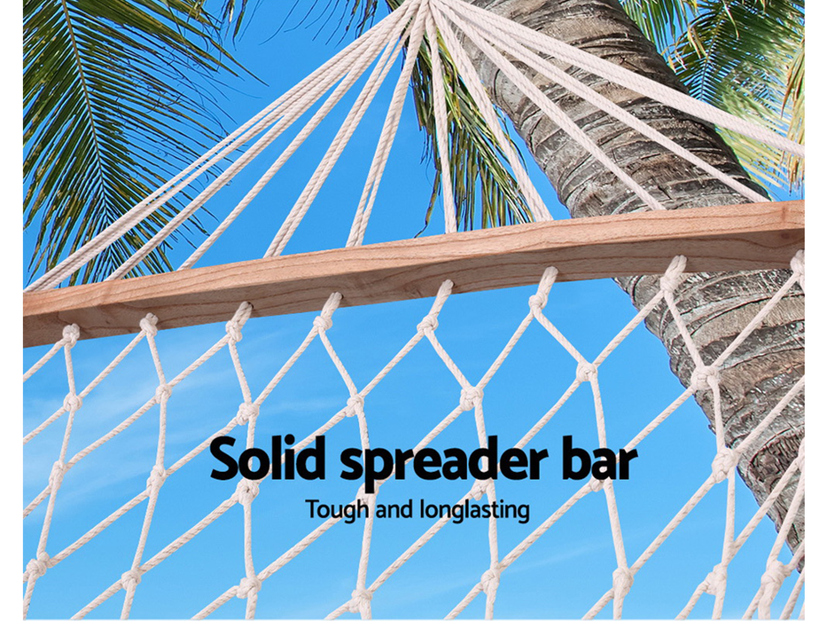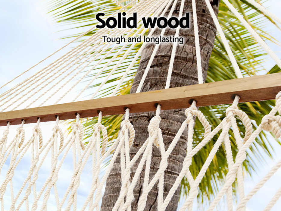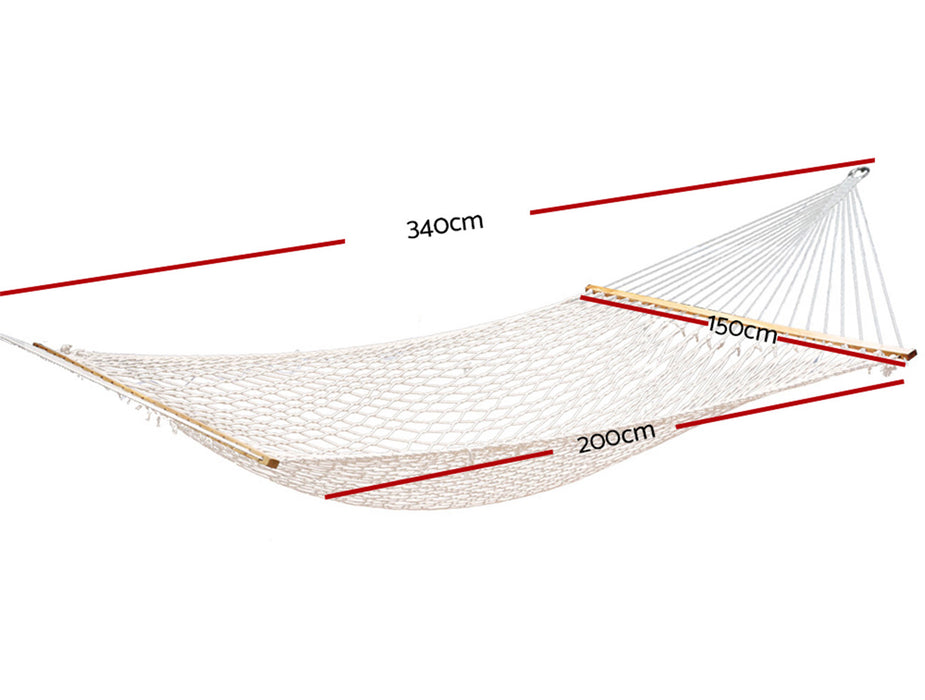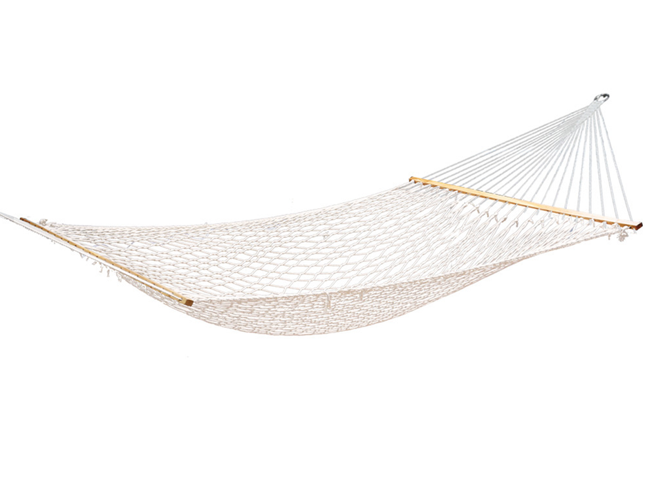 Relax and chill out in our Marley Hammock Bed. Built of a polyester and cotton fabric with solid wooden rails for a well-balanced hang, our hammock has all the right vibes of days spent relaxing in your garden, at the beach or even in your bedroom. Such is the versatility of this cool-looking piece. And with a weight capacity of 150kg (single) / 180kg (double), you can rest assured it will hang tough too.